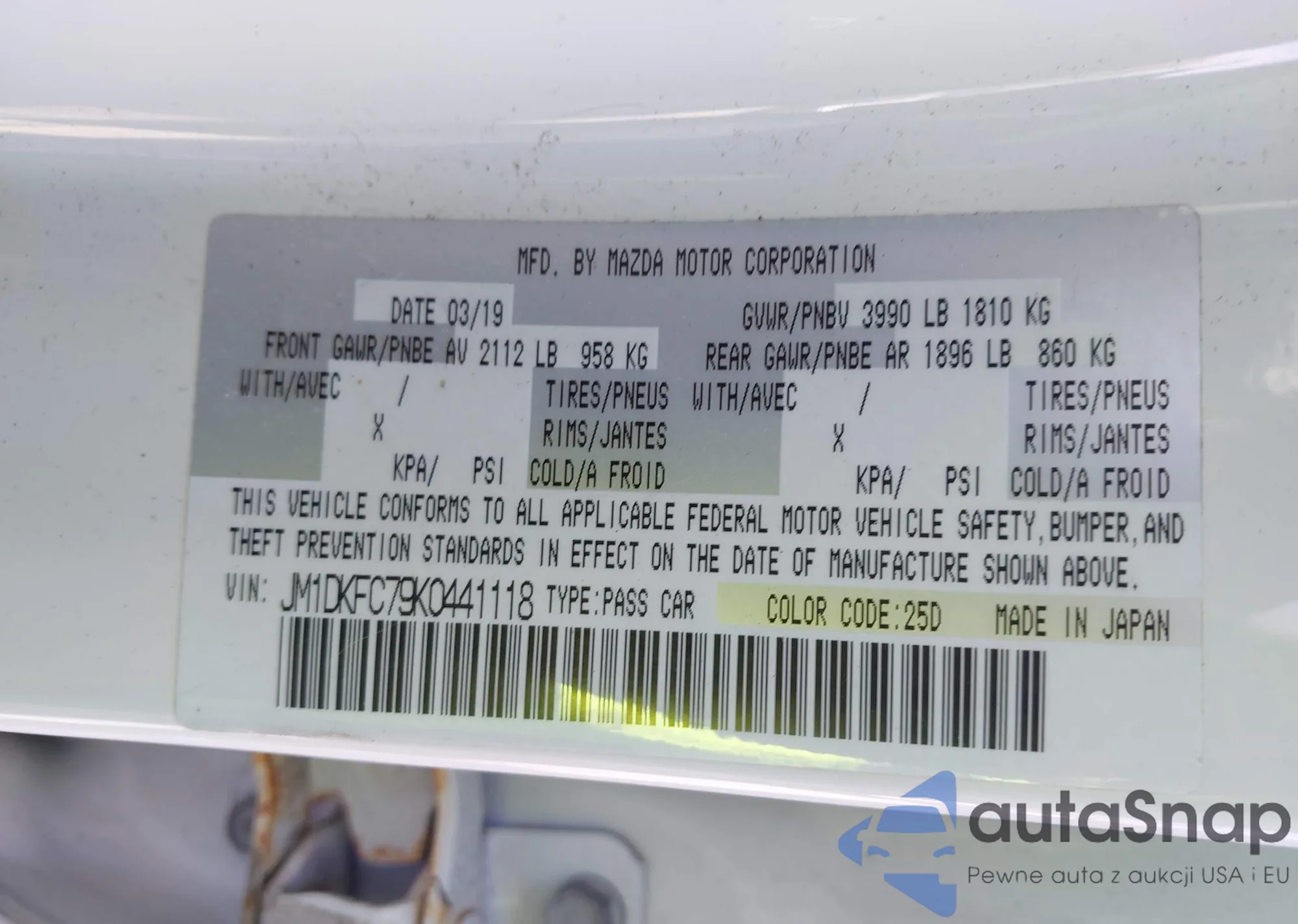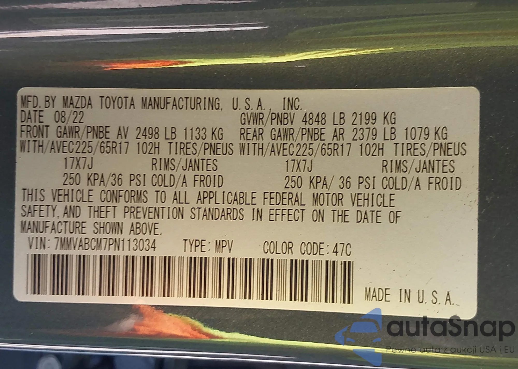 LOT: 43235359 VIN: 7MMVABCM7PN113034