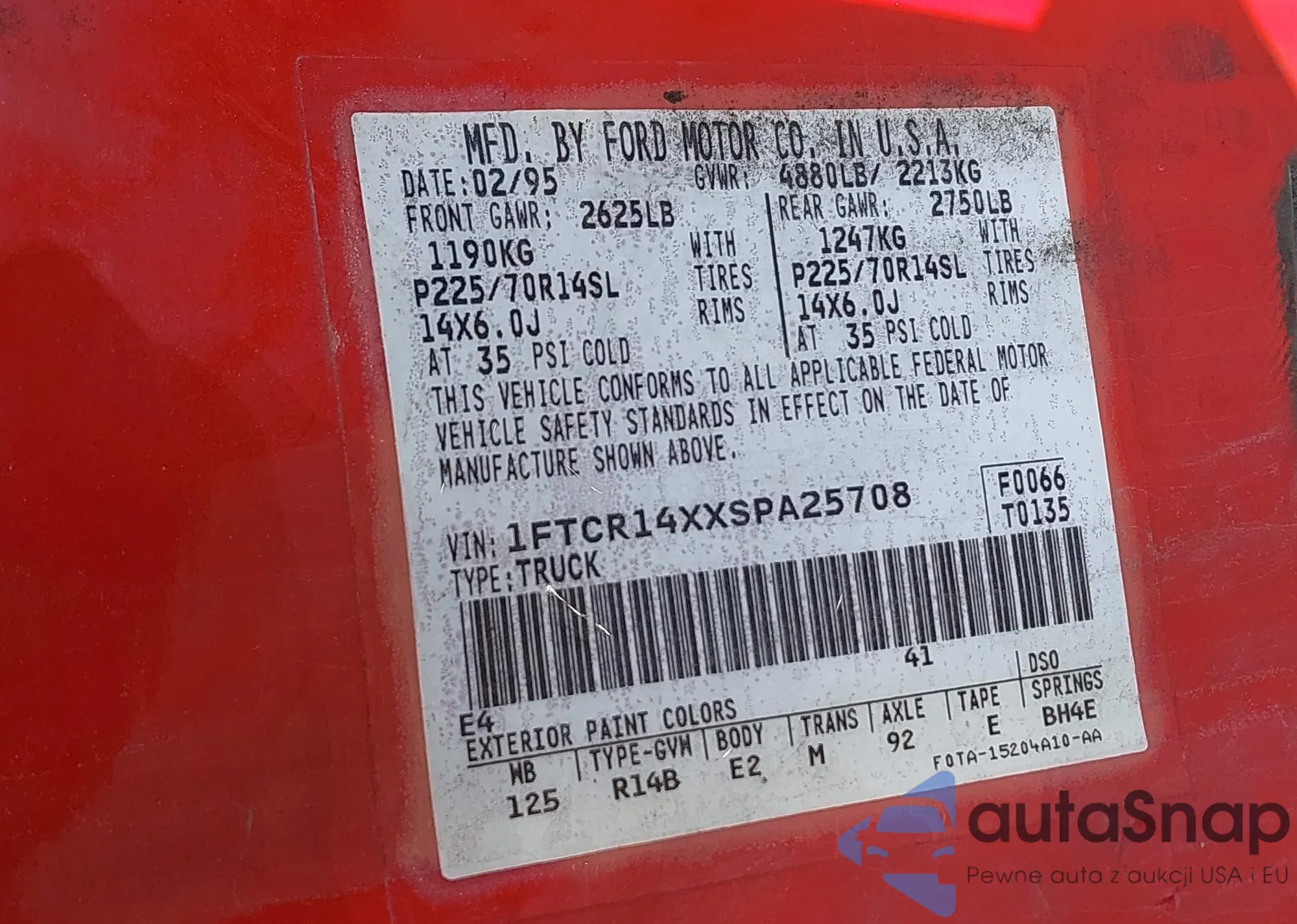 • VIN 1FTCR14XXSPA25708