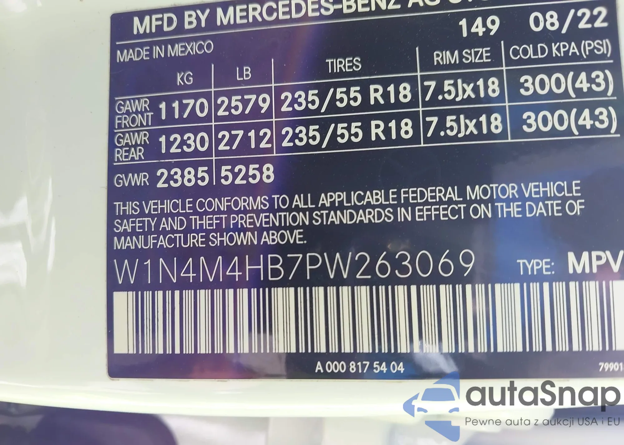 • VIN W1N4M4HB7PW263069