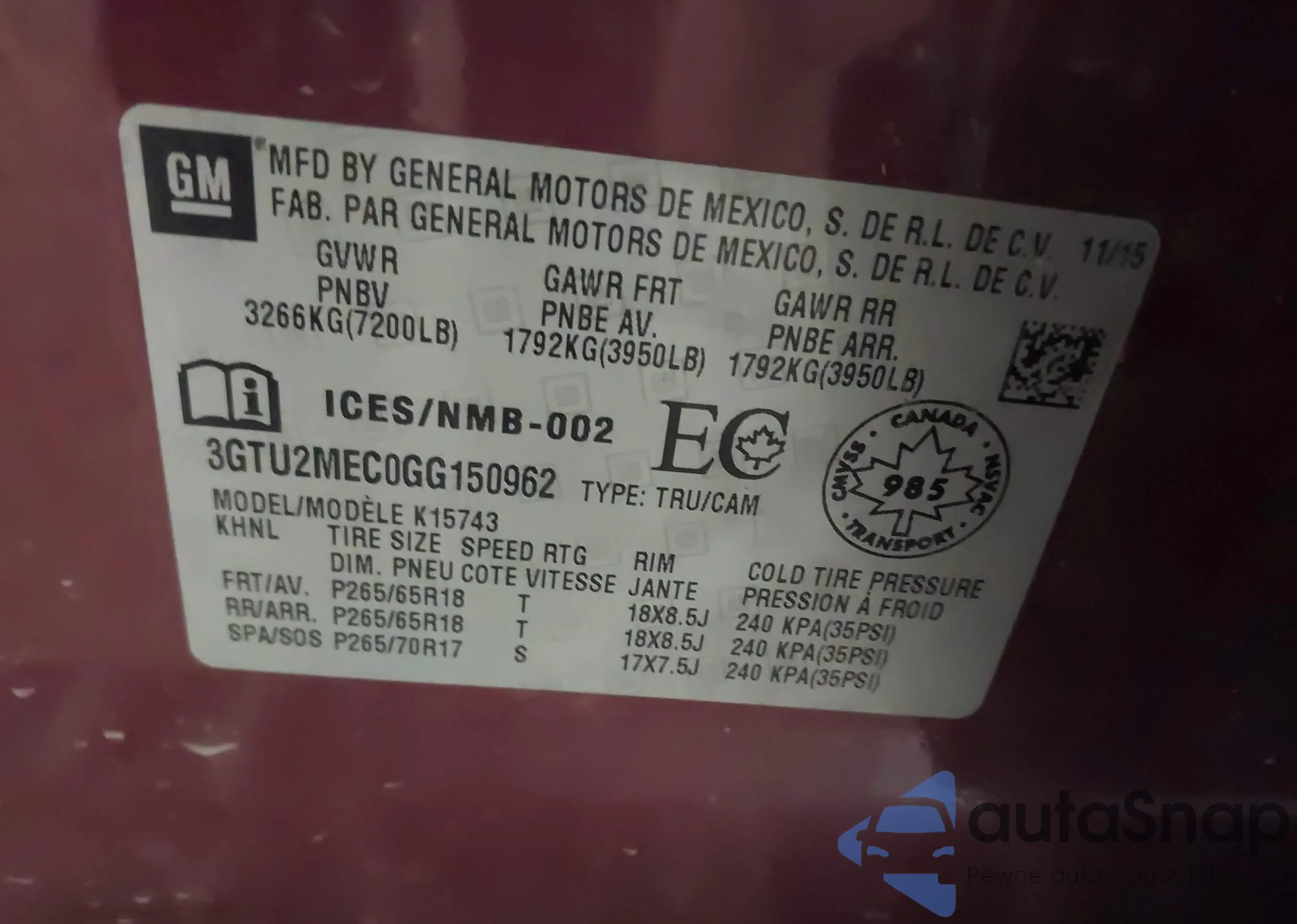 • VIN 3GNAXJEV4JS576587