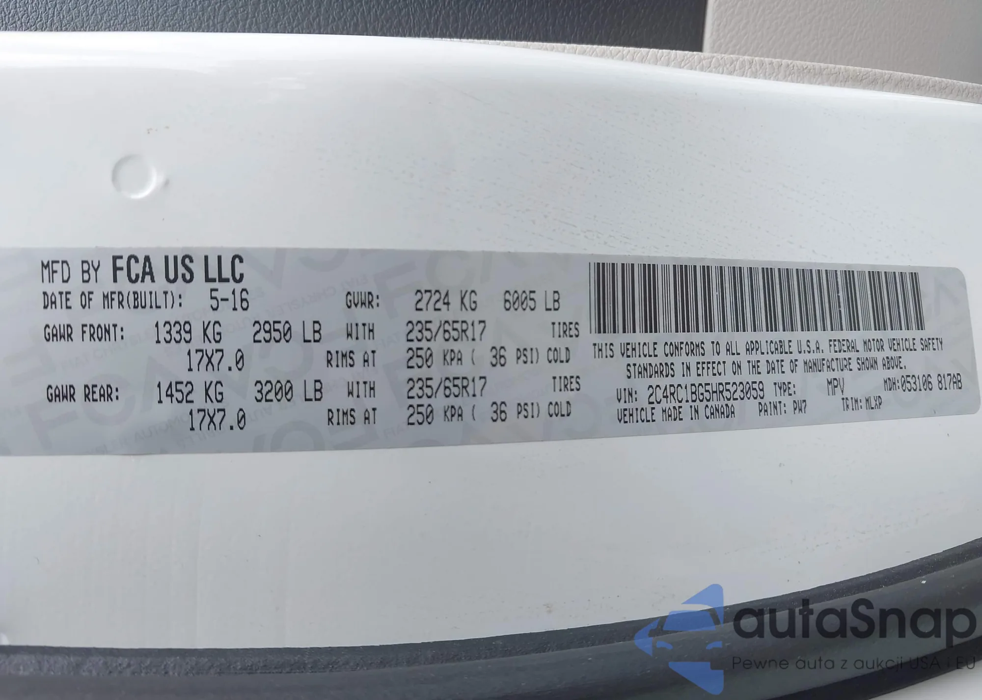 • VIN 2C4RC1BG5HR523059