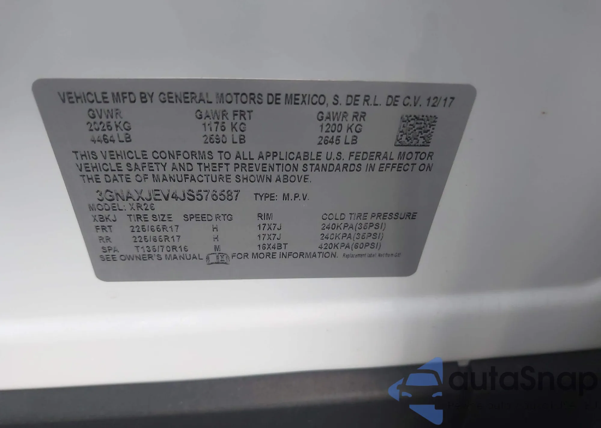 LOT: 43061989 VIN: 3GNAXJEV4JS576587