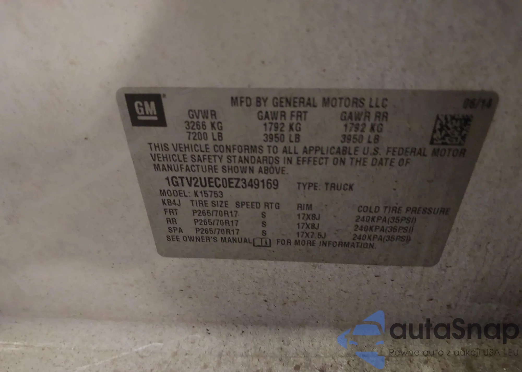 LOT: 43087081 VIN: 1GTV2UEC0EZ349169