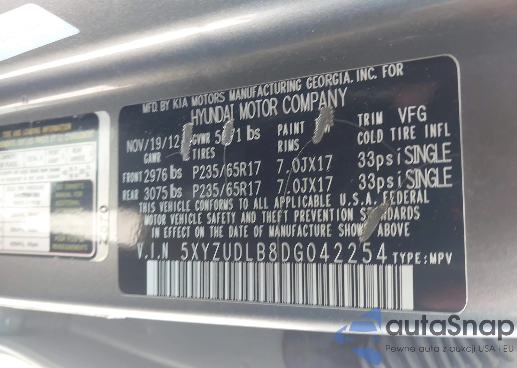 • VIN 5XYZUDLB8DG042254