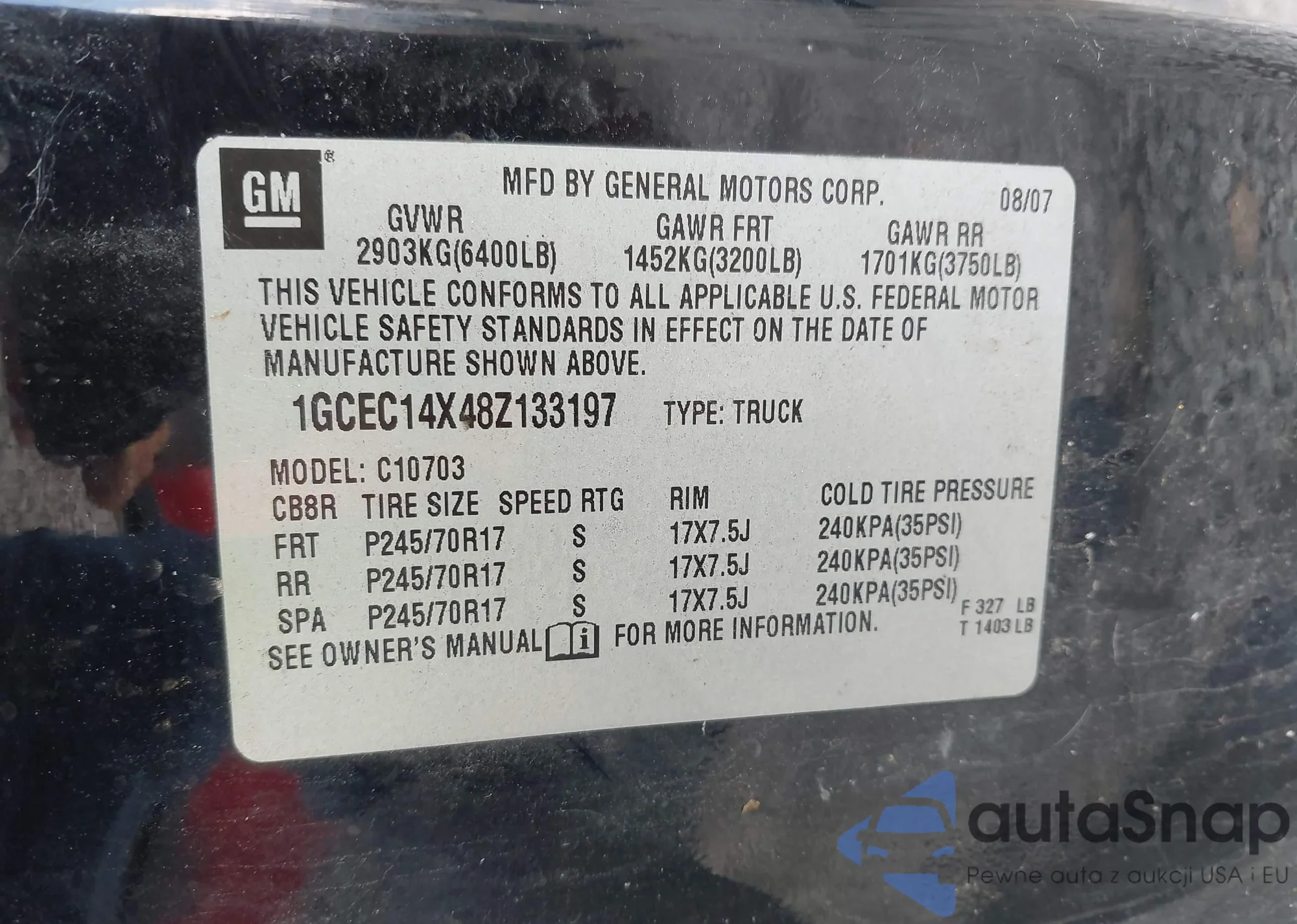 LOT: 43486513 VIN: 1GCEC14X48Z133197