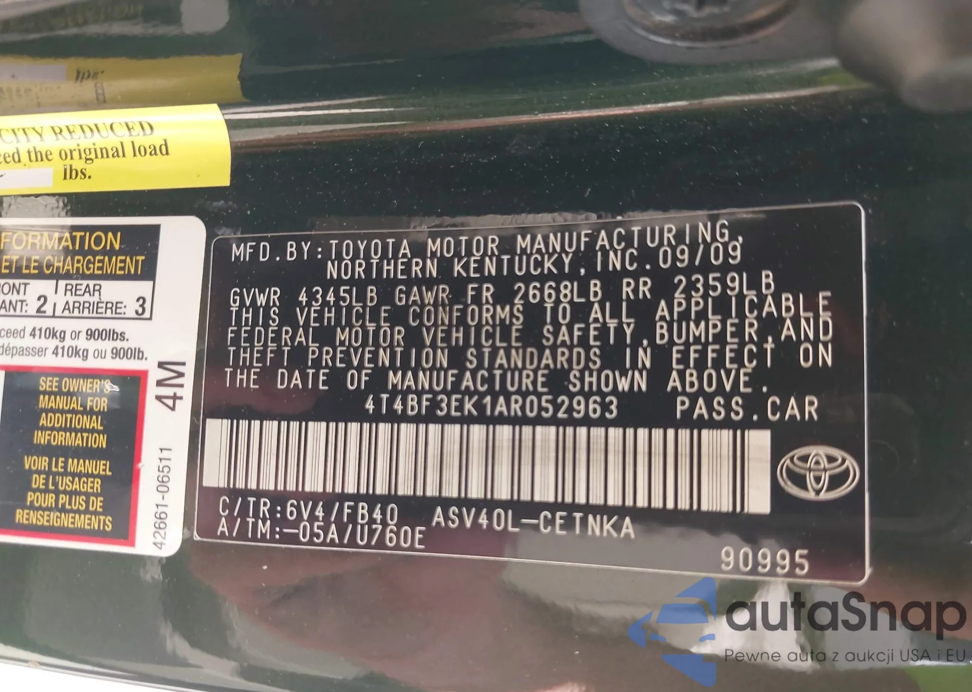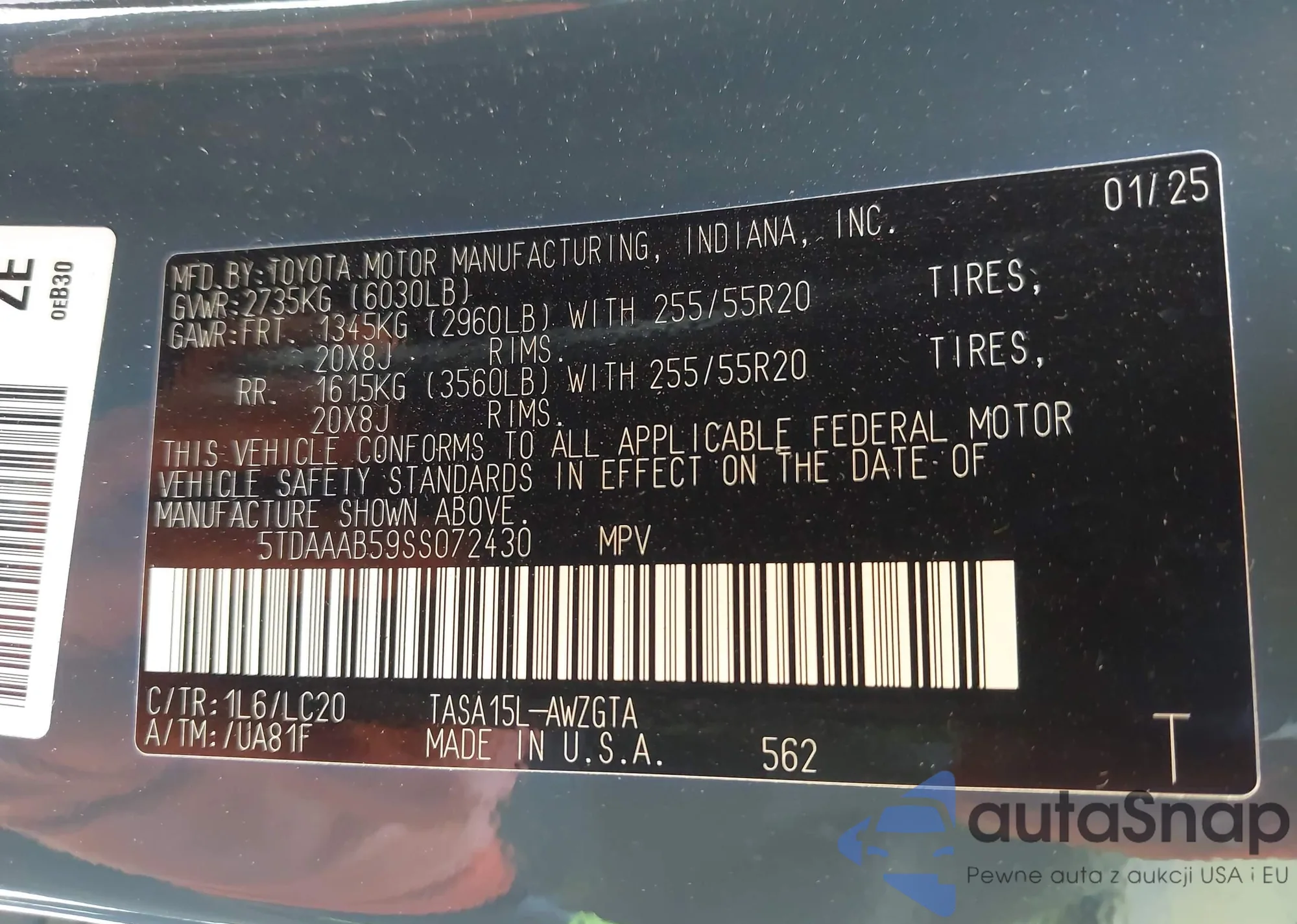 • VIN 5TDAAAB59SS072430