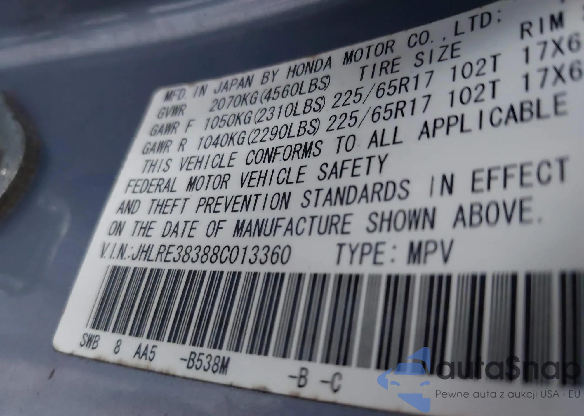 • VIN JHLRE38388C013360