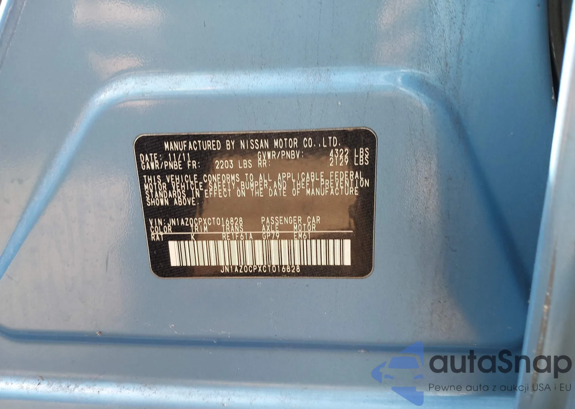 LOT: 43315786 VIN: JN1AZ0CPXCT016828