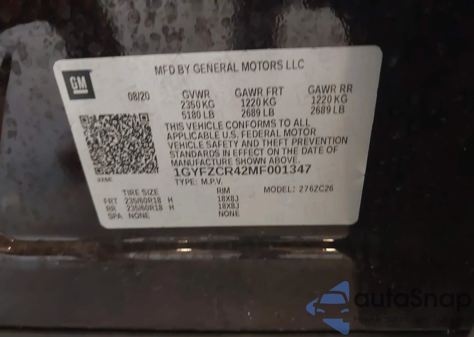 LOT: 43347725 VIN: 1GYKNDRS8JZ126992