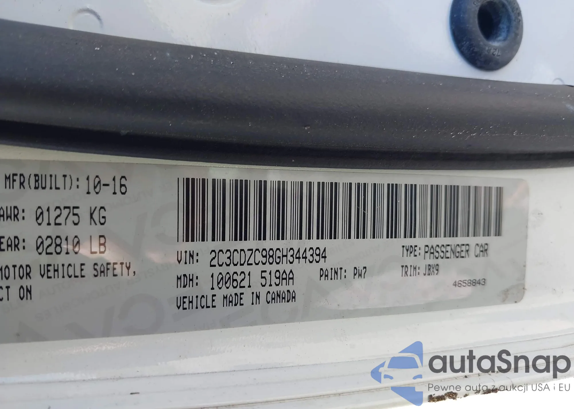 LOT: 43309335 VIN: 2C3CDZC98GH344394