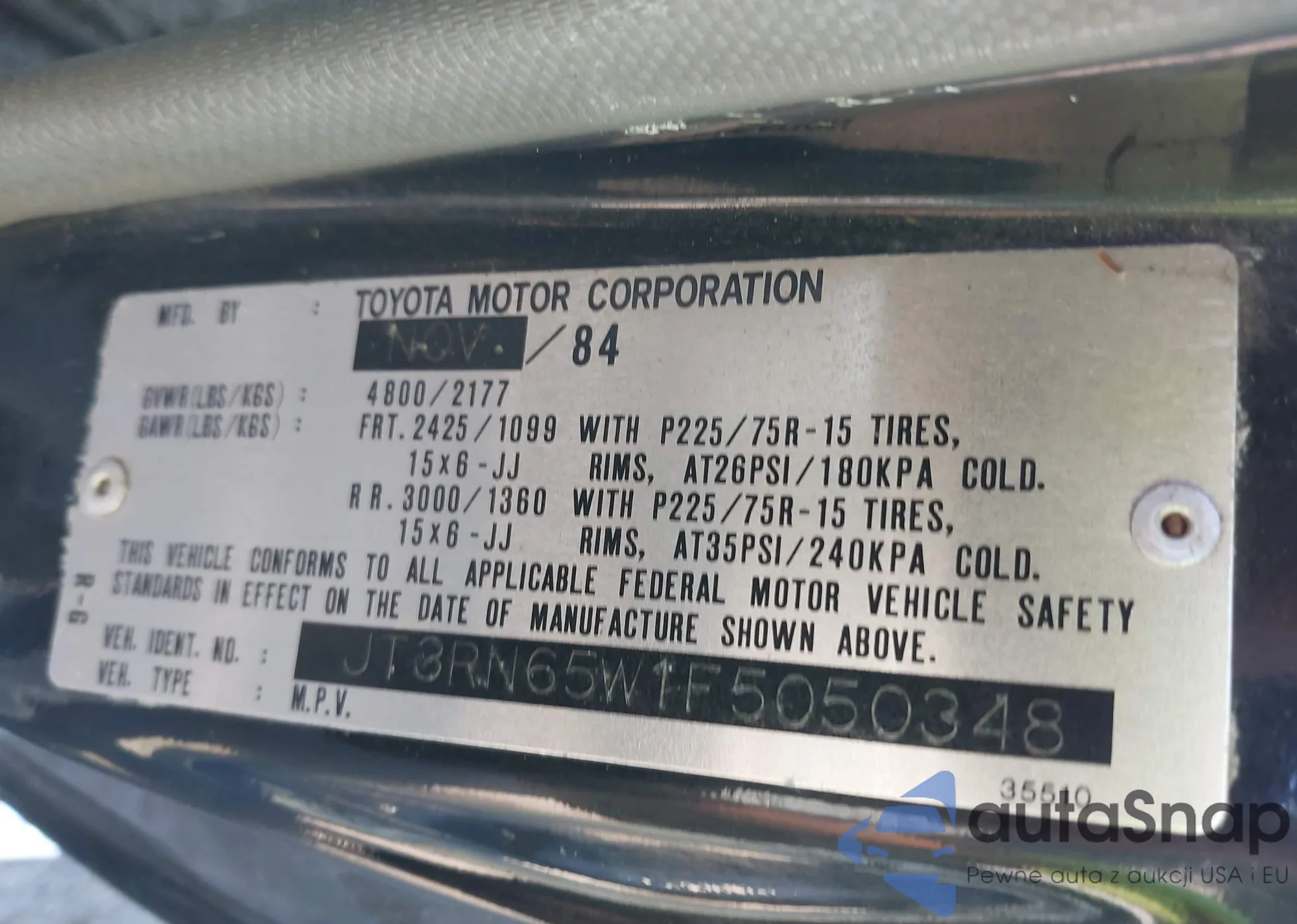 • VIN JT3RN65W1F5050334
