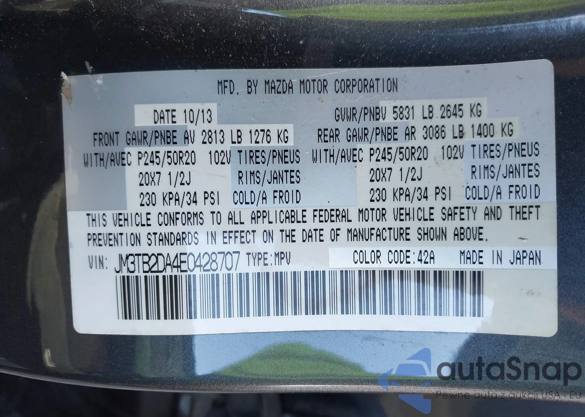 • VIN JM3TB2DA4E0428707