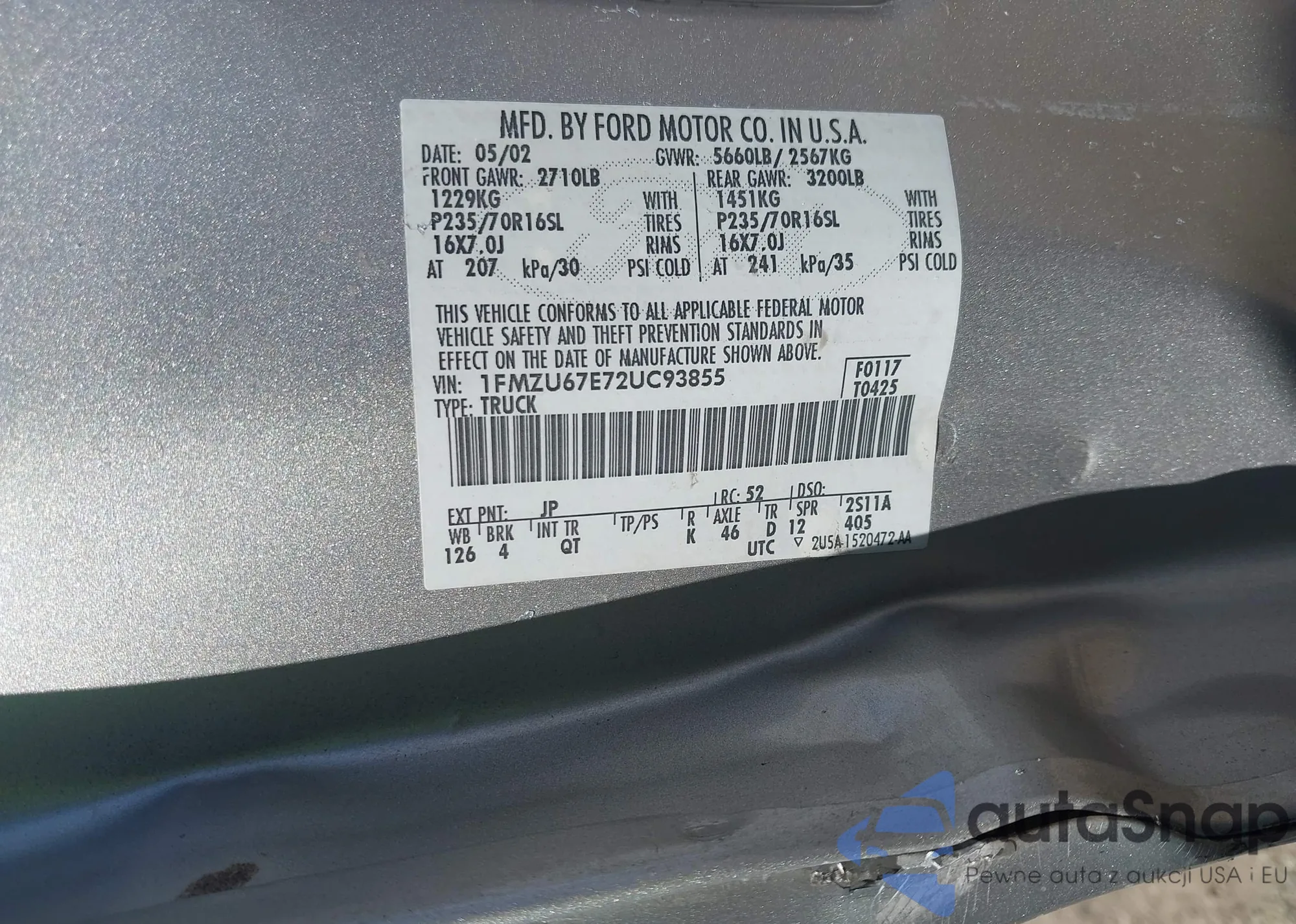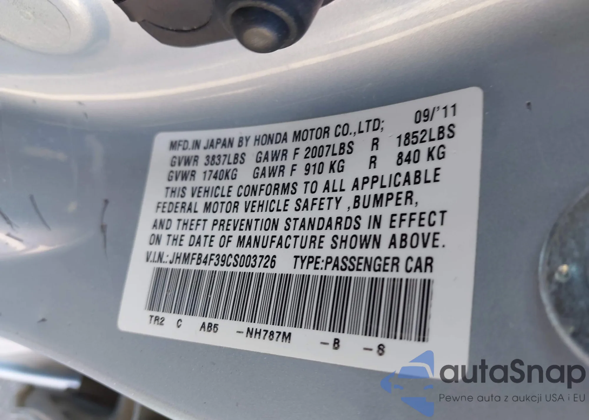• VIN JHMFB4F39CS003726