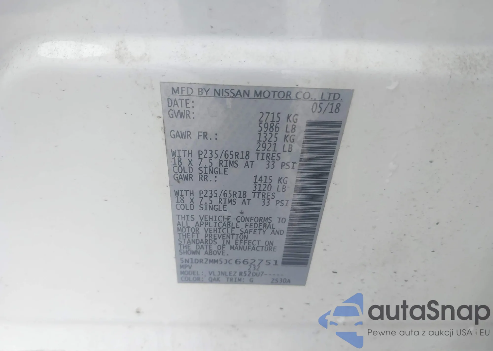 LOT: 43357196 VIN: KMHD84LF2JU628097