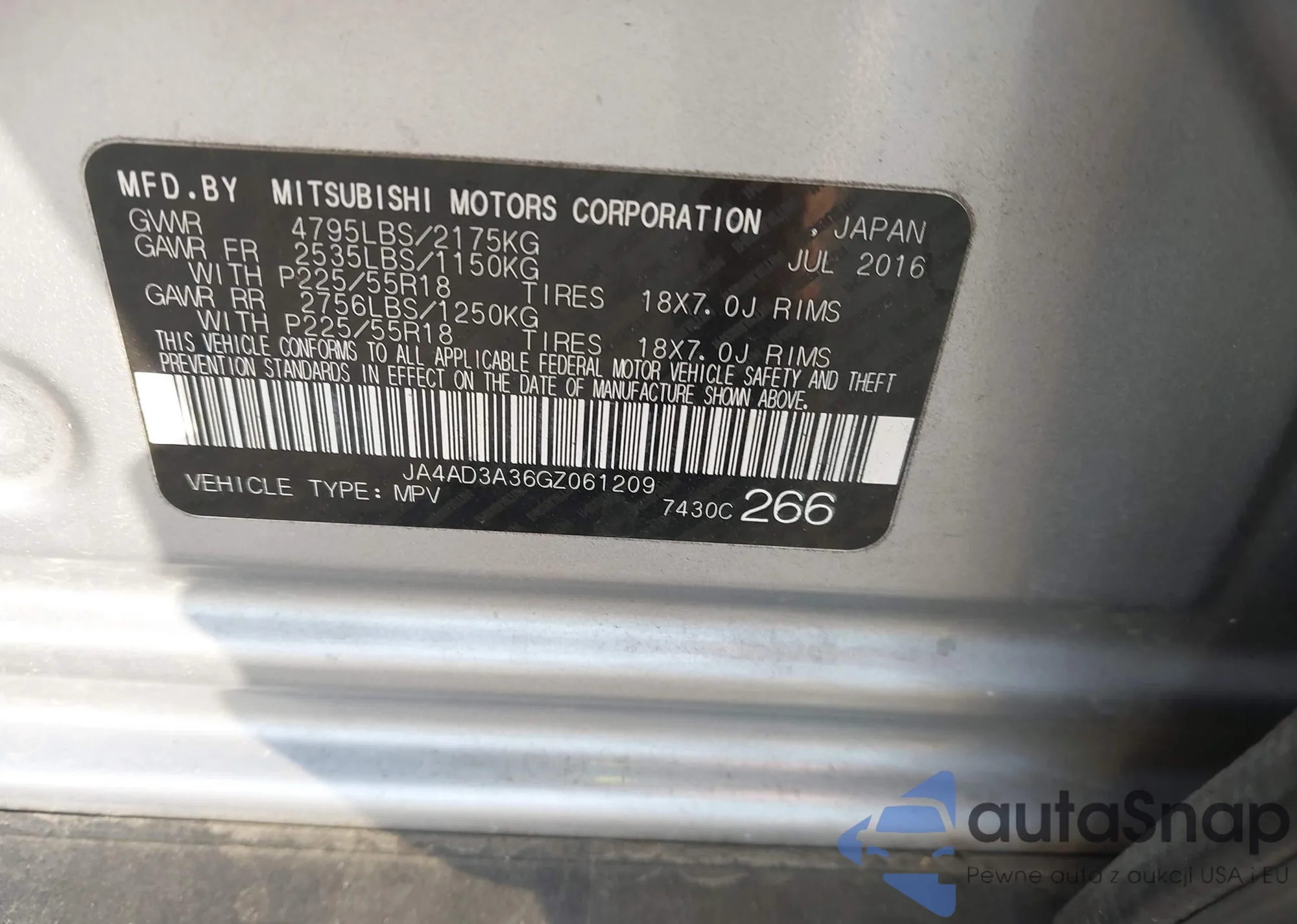 LOT: 43347836 VIN: JA4AD3A36GZ061209
