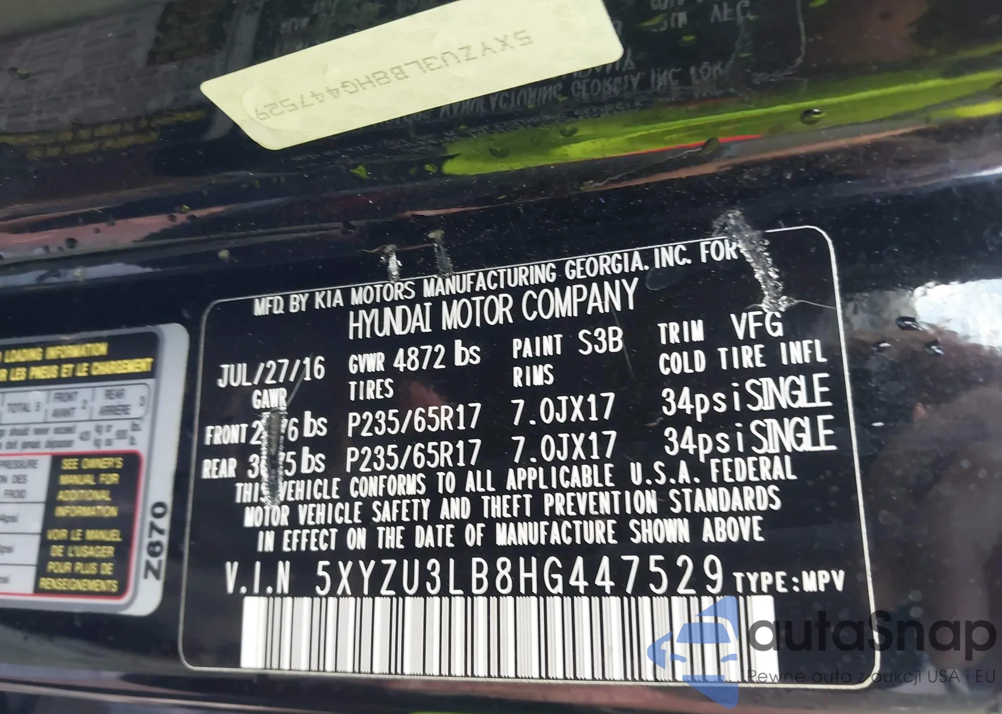 • VIN 5XYZU3LB8HG447529