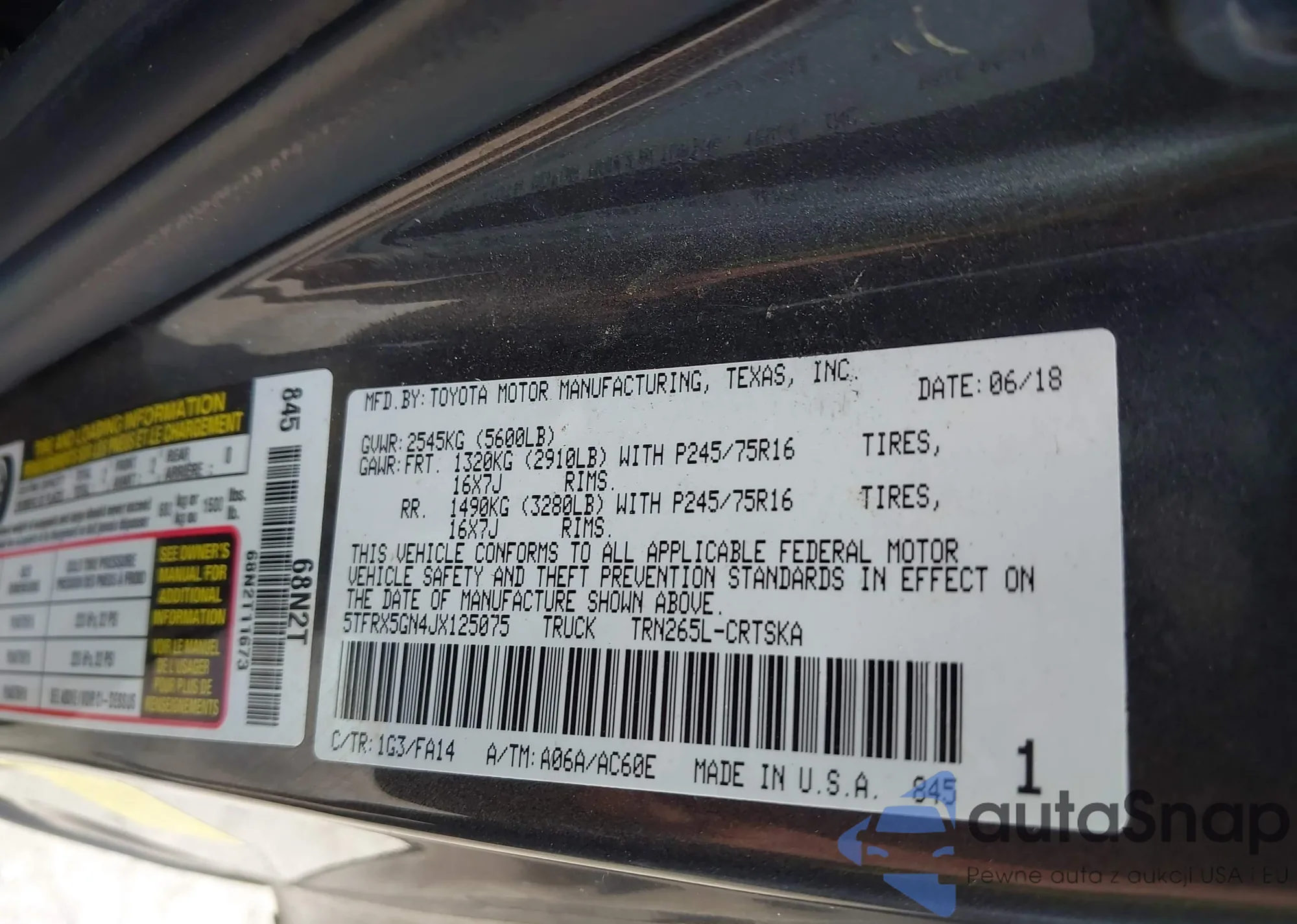 LOT: 43171149 VIN: 5TFRX5GN4JX125075