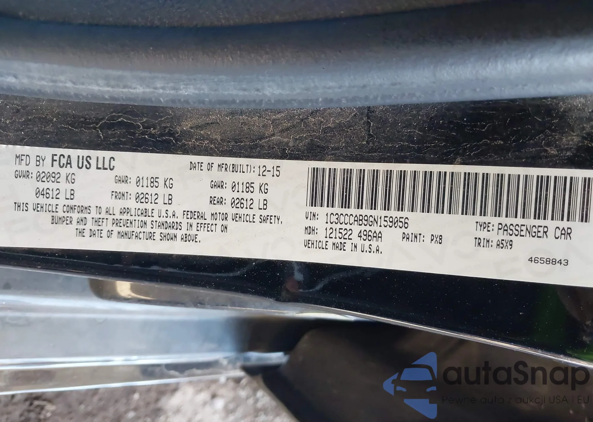 LOT: 43359357 VIN: 1C3CCCAB9GN159056
