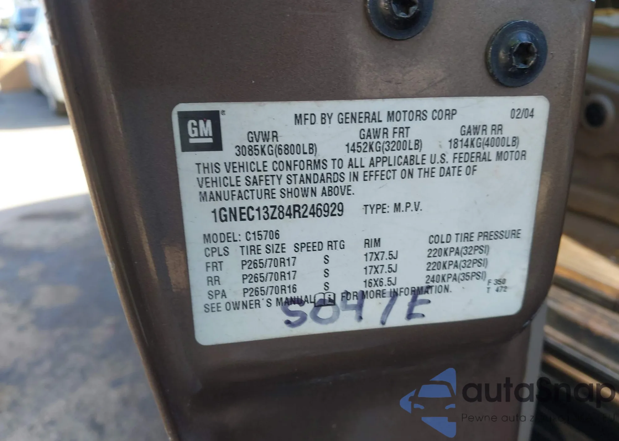 • VIN 1GNEC13Z84R246929