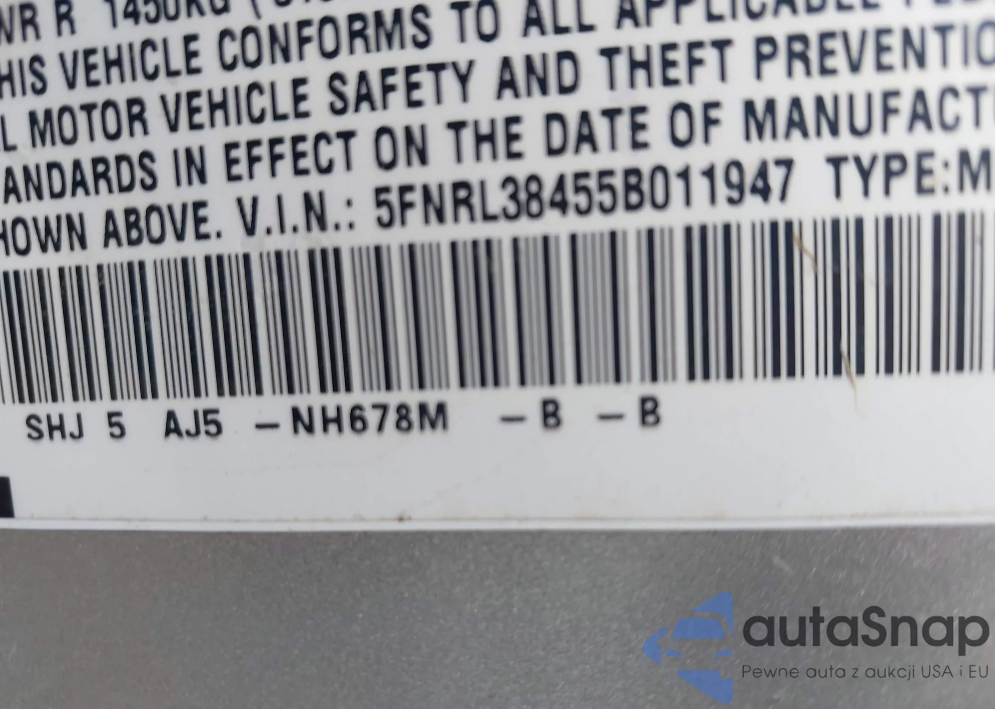 • VIN 5FNRL38455B011947