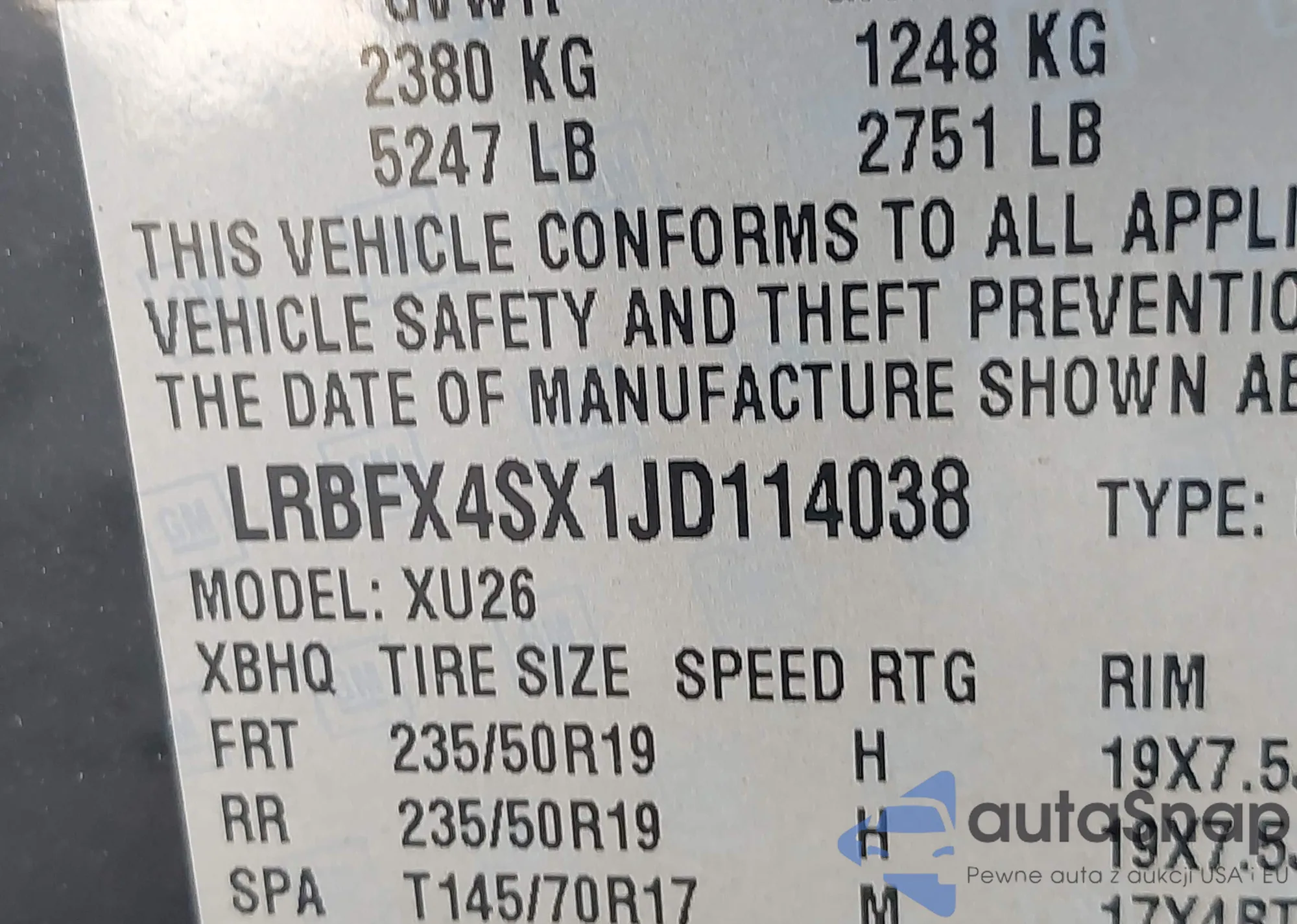 • VIN LRBFX4SX1JD114038