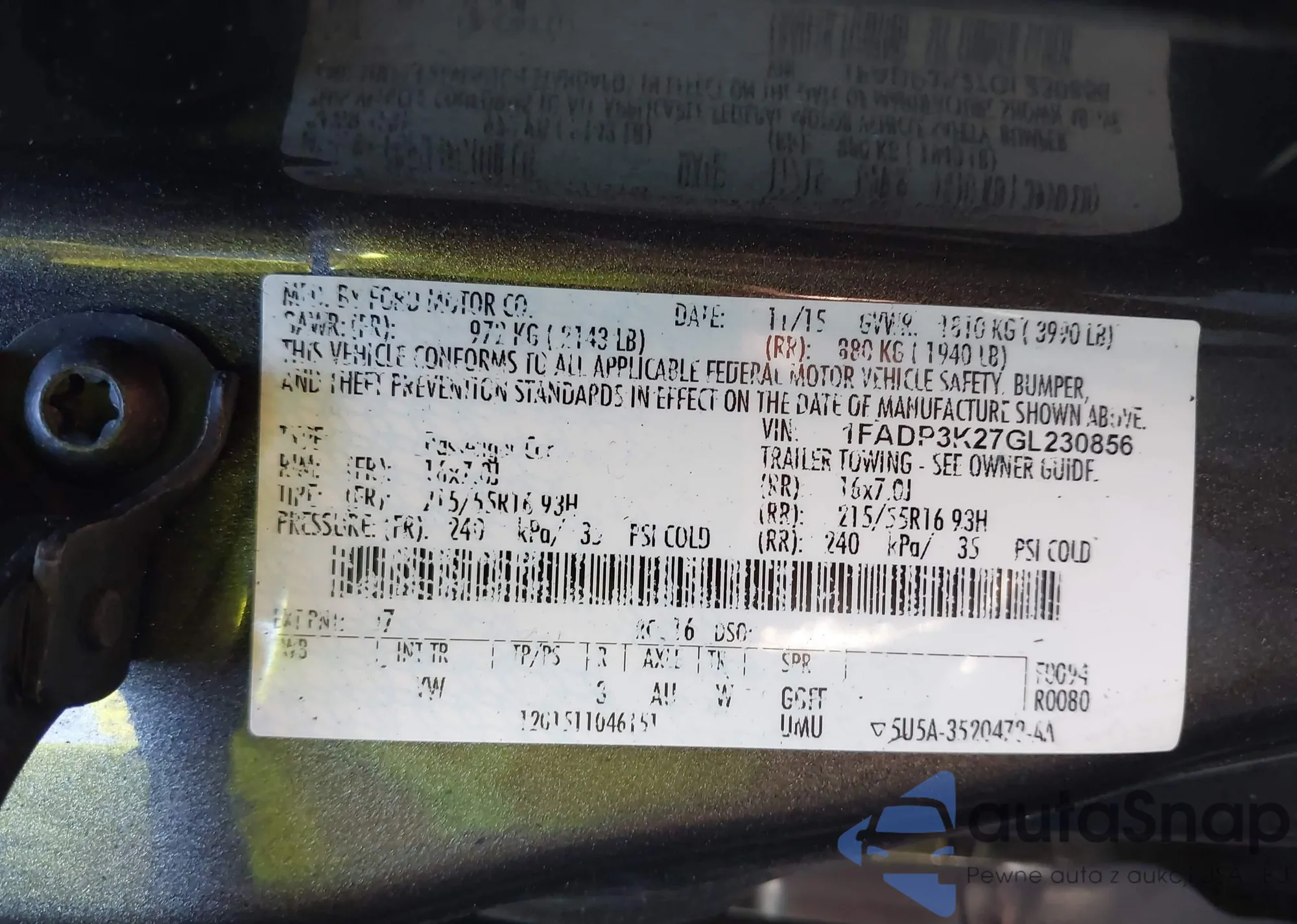 • VIN 1FADP3K27GL230856