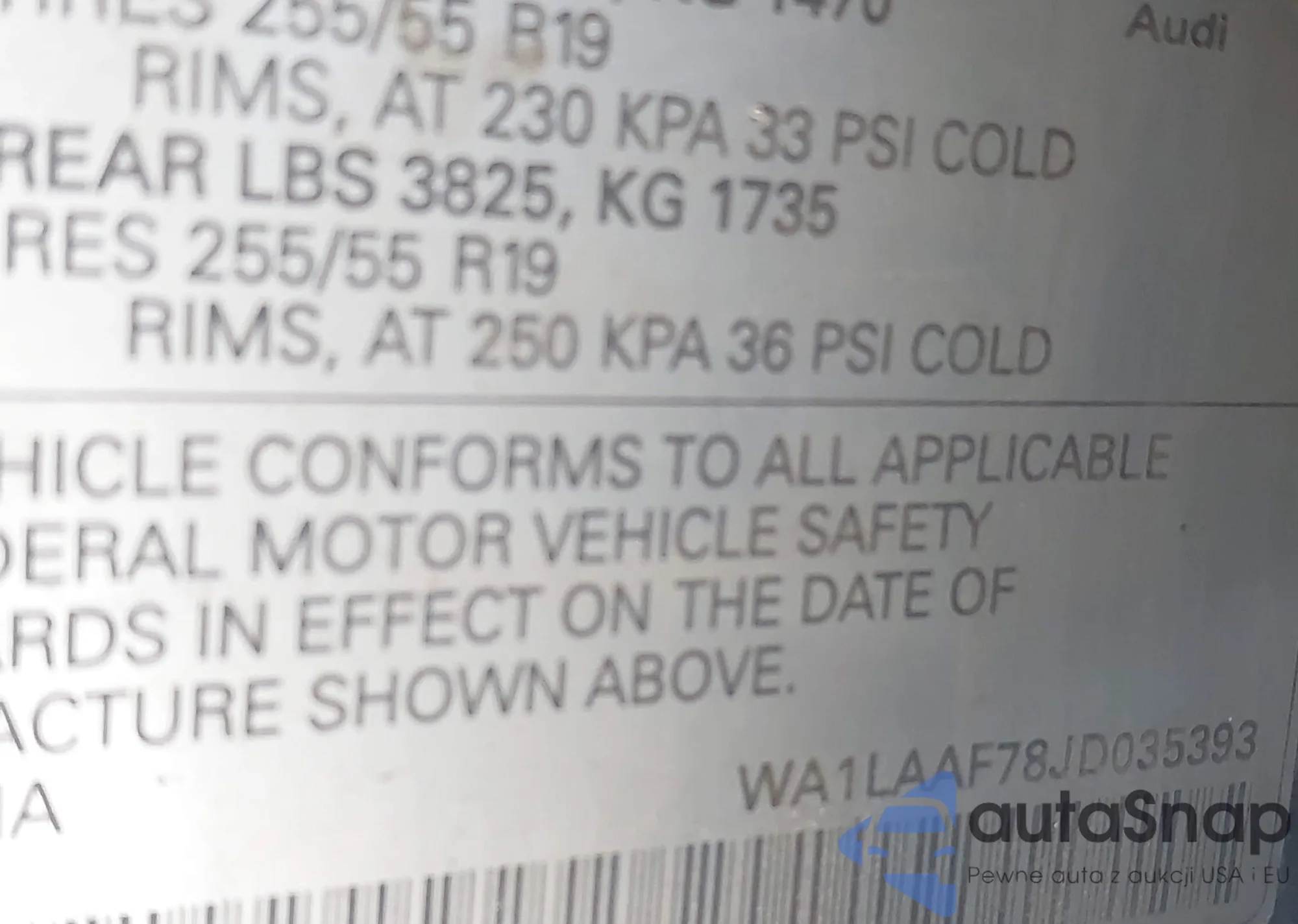 • VIN WA1LAAF78JD035393