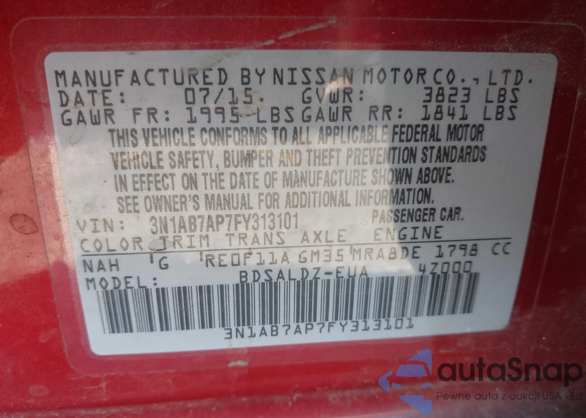 LOT: 43448177 VIN: 3N1AB7AP7FY348026