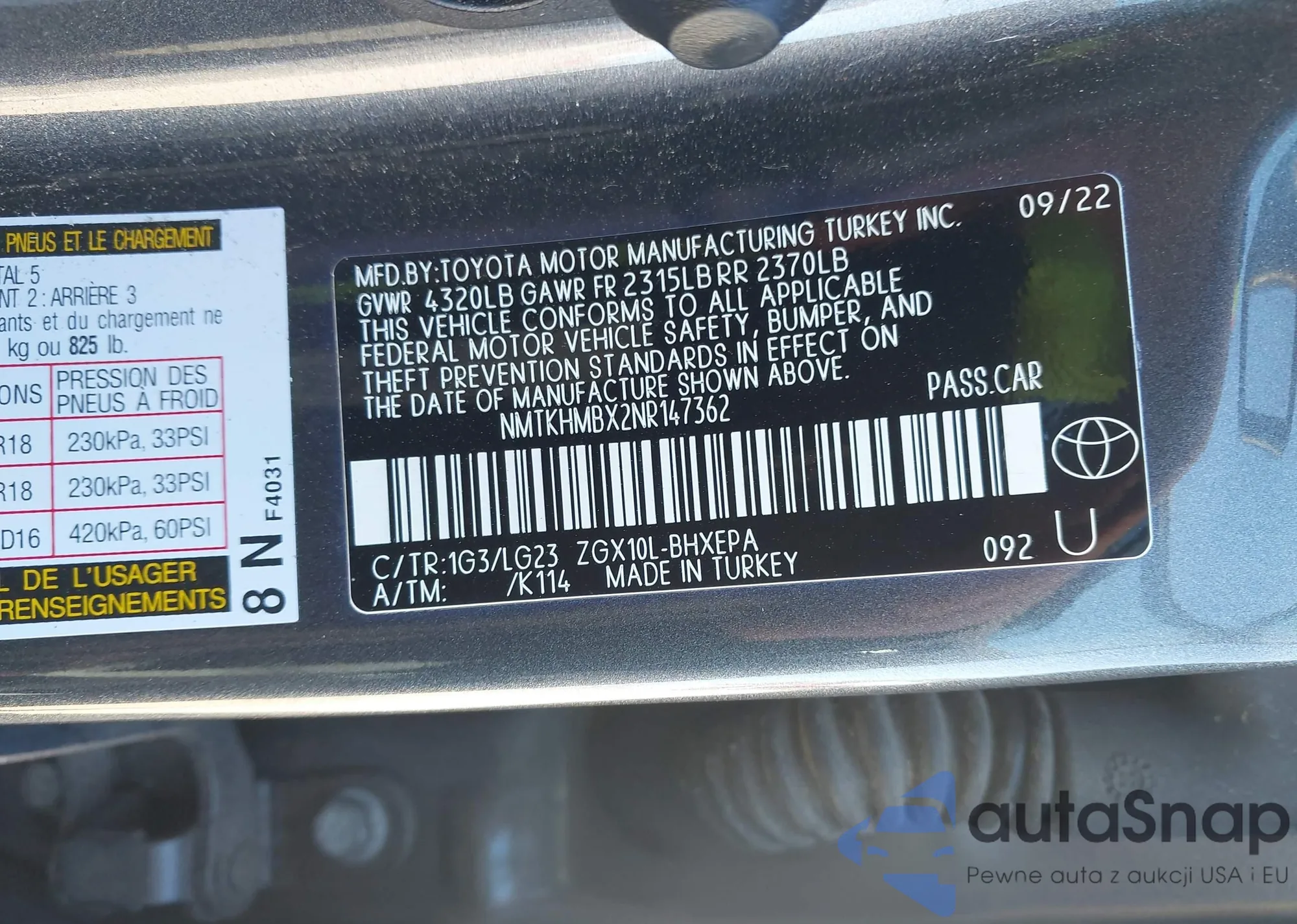 • VIN NMTKHMBX2NR147362