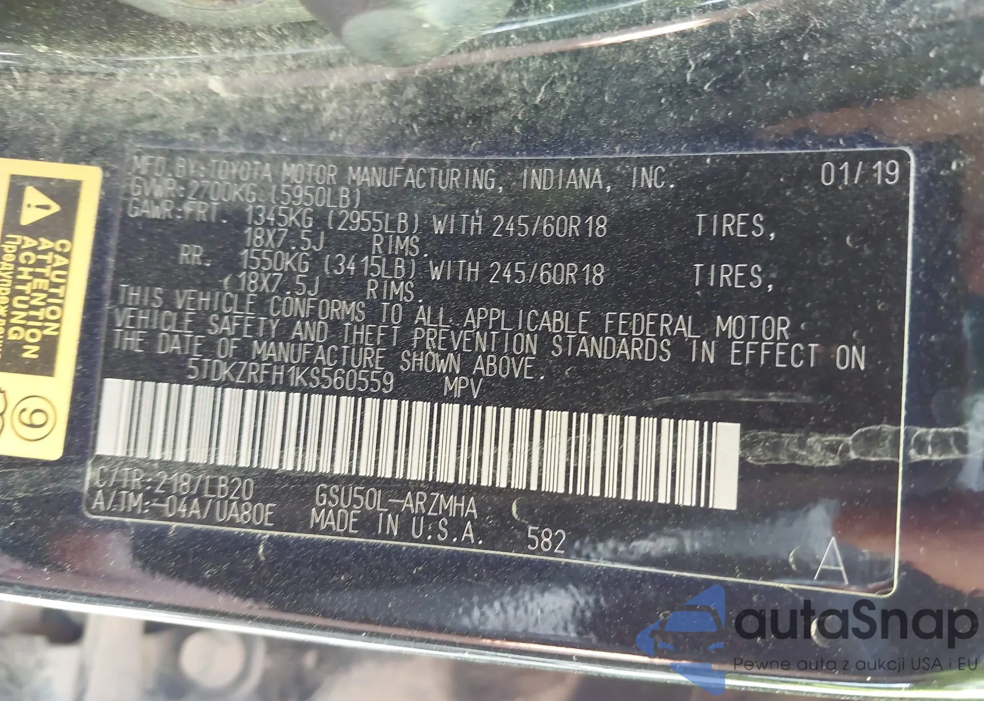 • VIN 5TDKZRFH1KS560559
