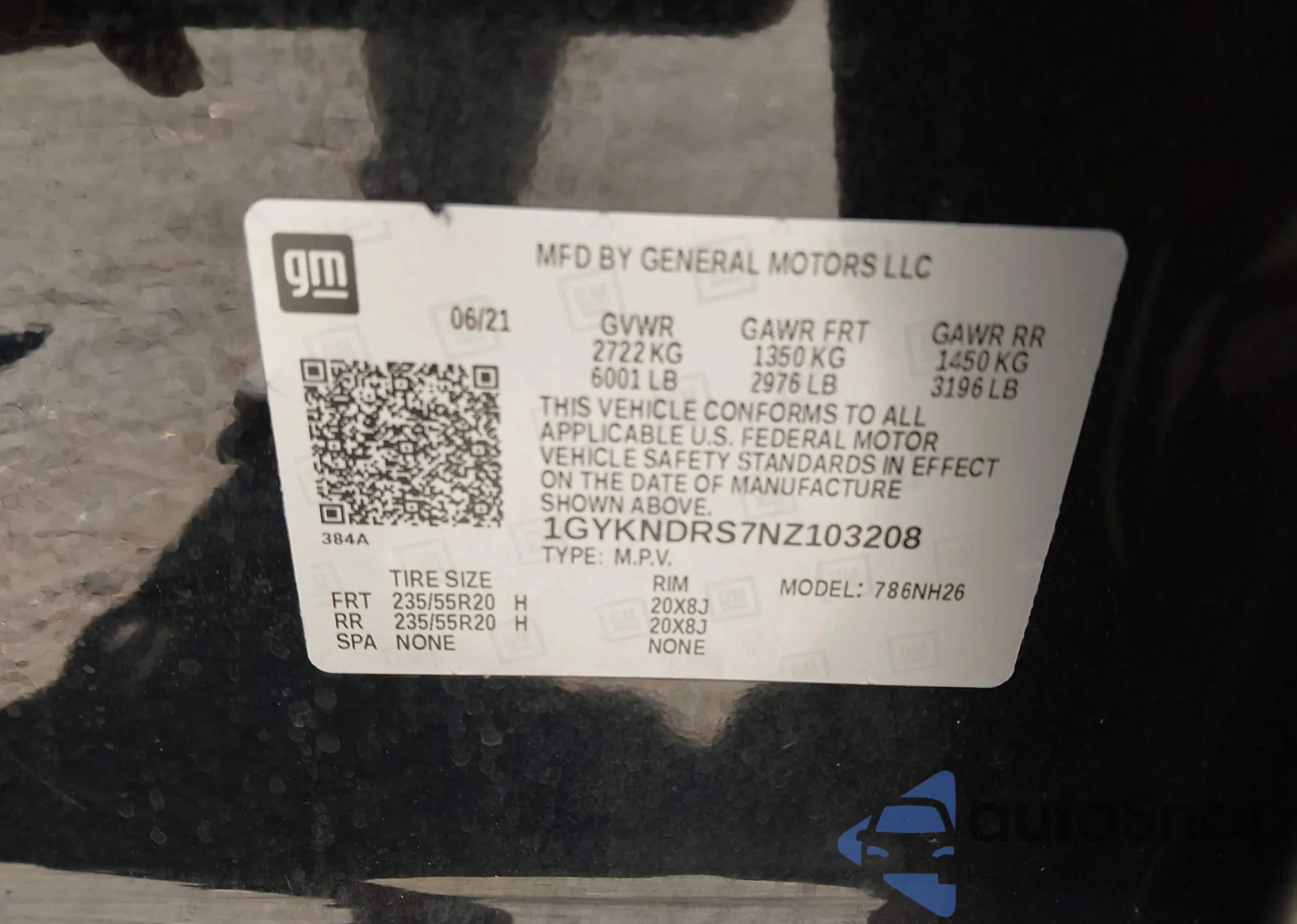 • VIN 1GYKNDRS7NZ103208