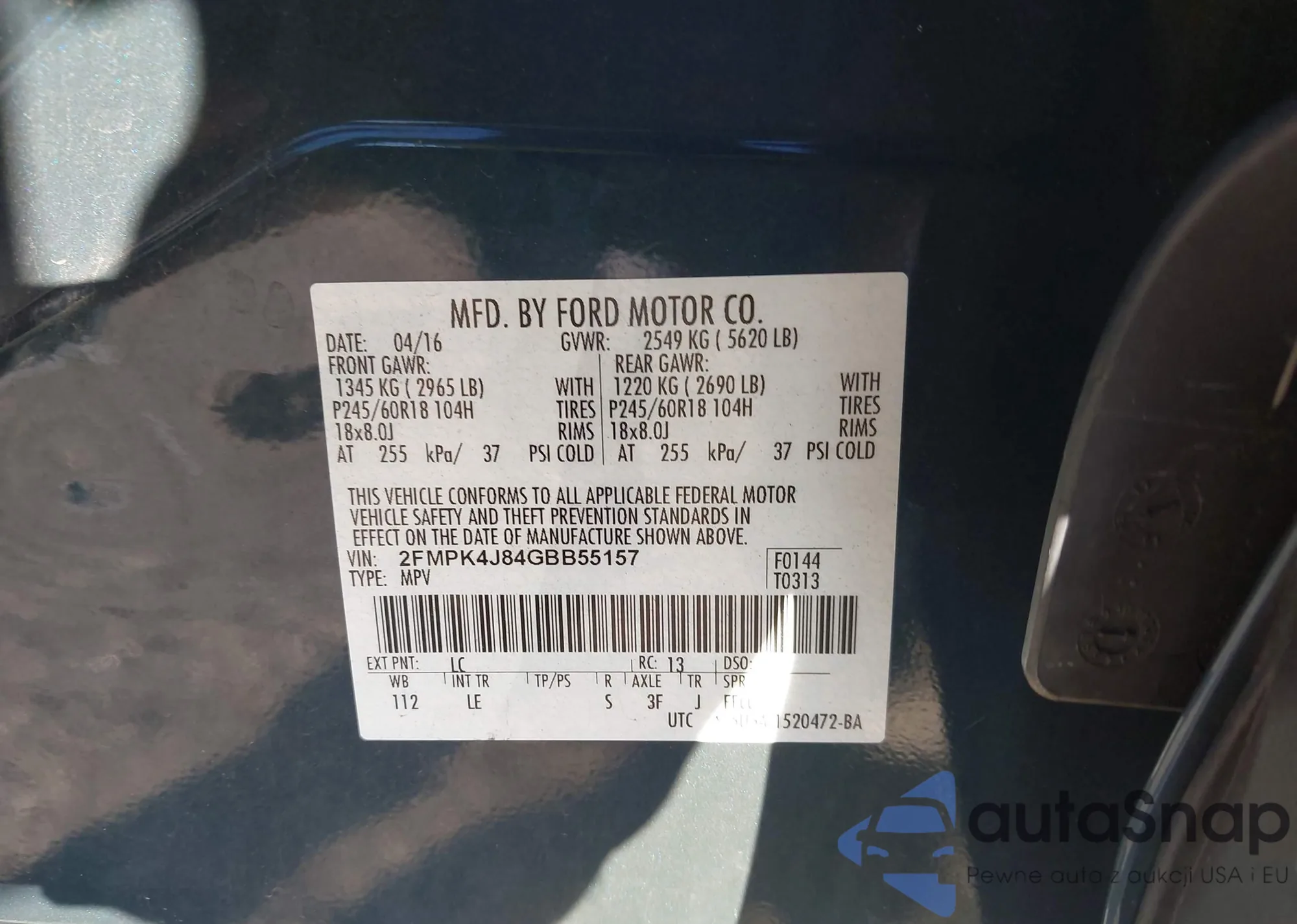 LOT: 43162892 VIN: 2FMPK4J84GBB55157