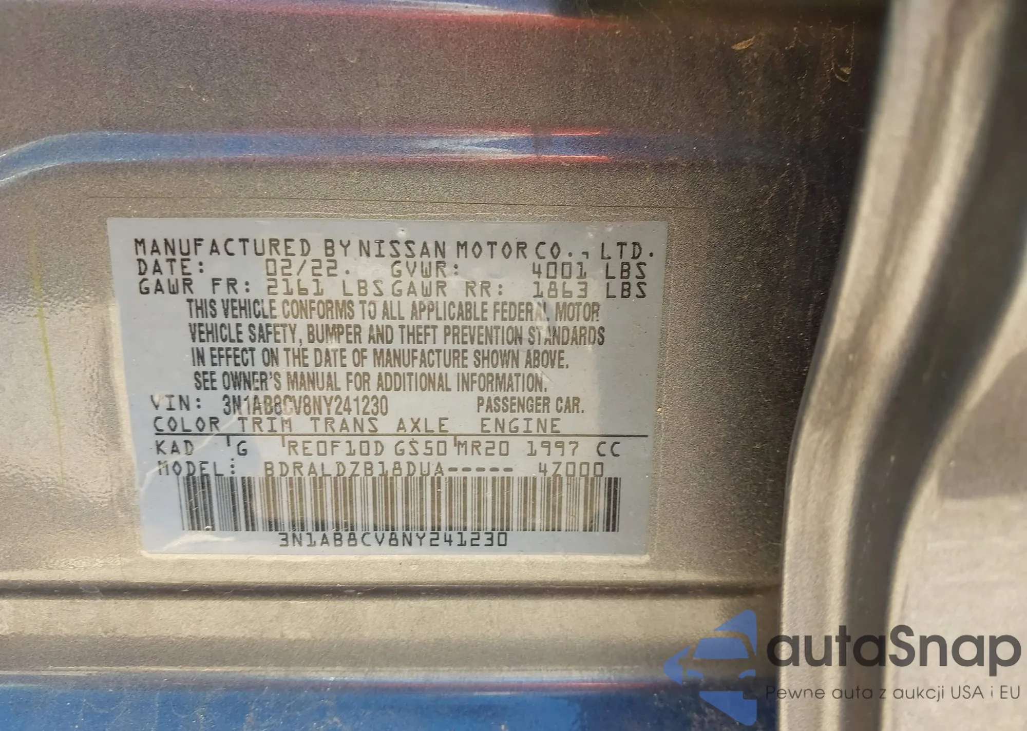 • VIN 3N1AB8CV8NY241230