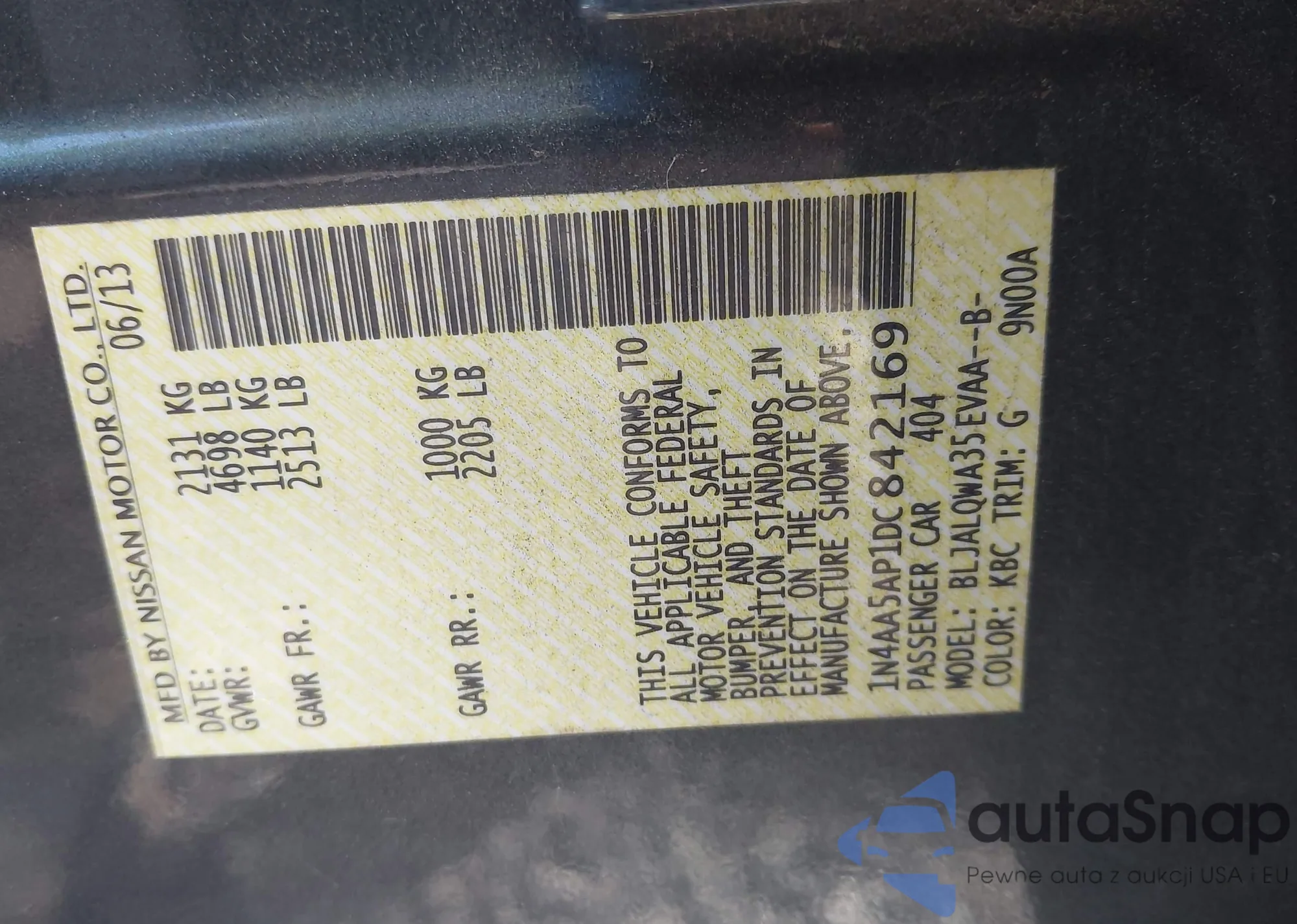 LOT: 43350098 VIN: 1N4AA5AP1DC842169