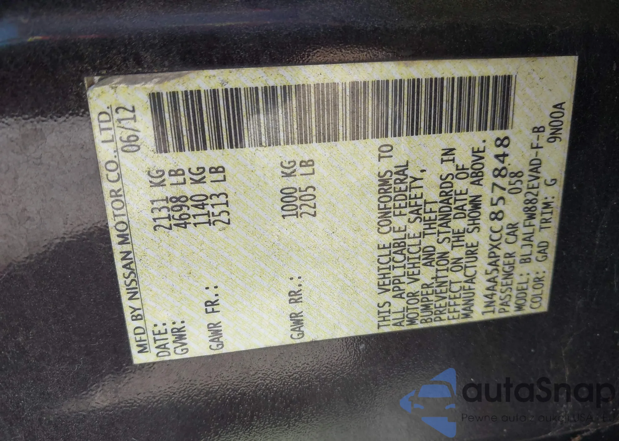 • VIN 1N4AA5APXCC857848
