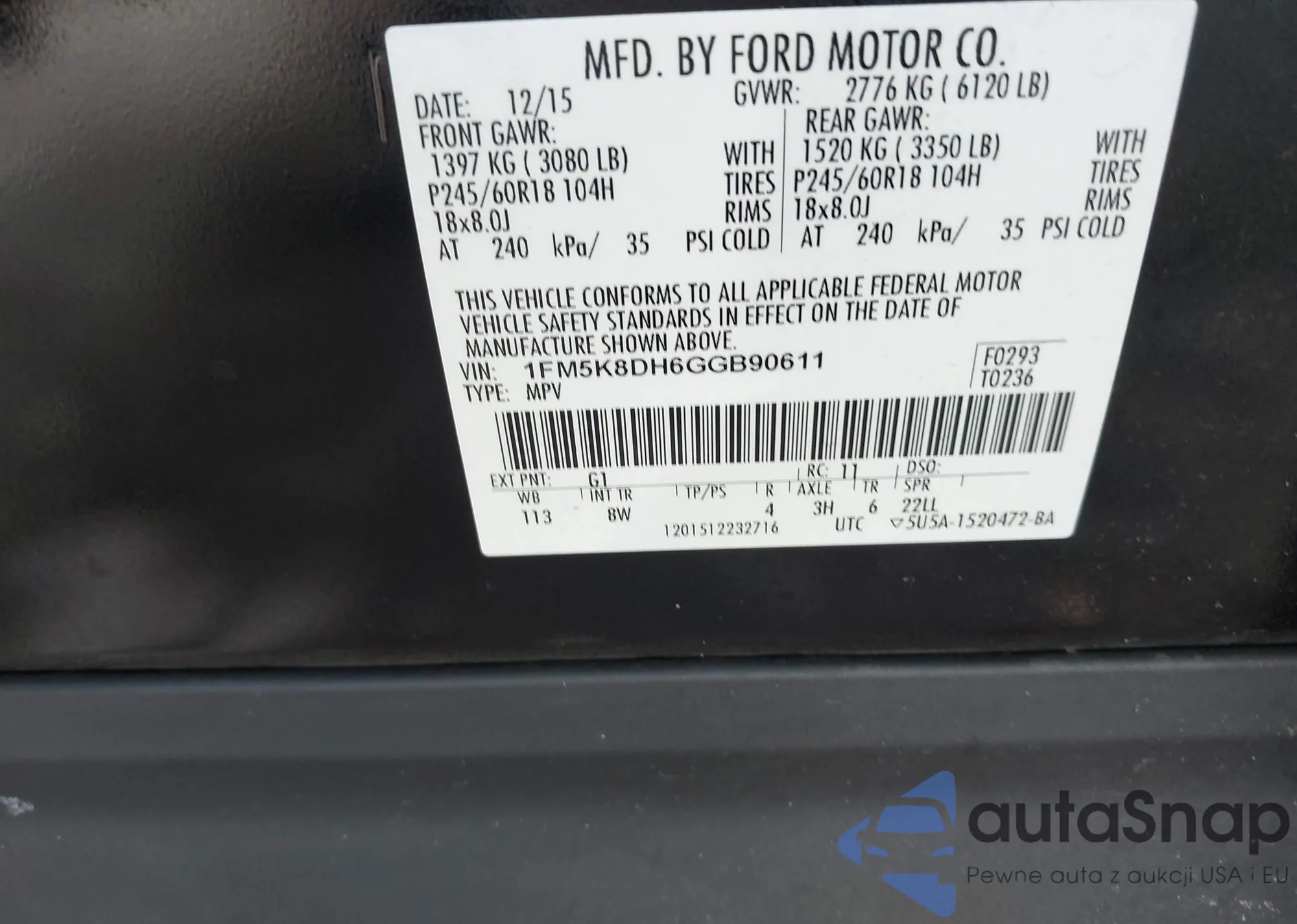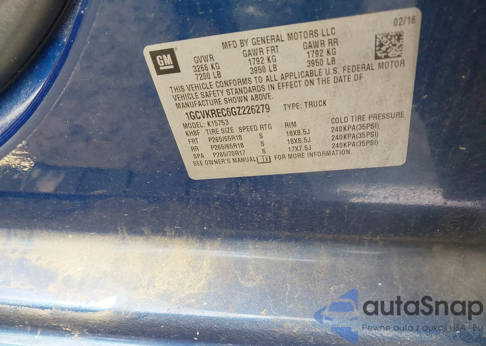 LOT: 42320857 VIN: 1GCVKREC6GZ226279