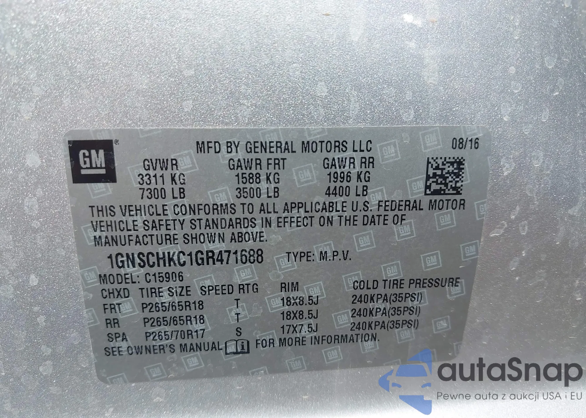 LOT: 43326278 VIN: 1GNSCHKC1GR471688