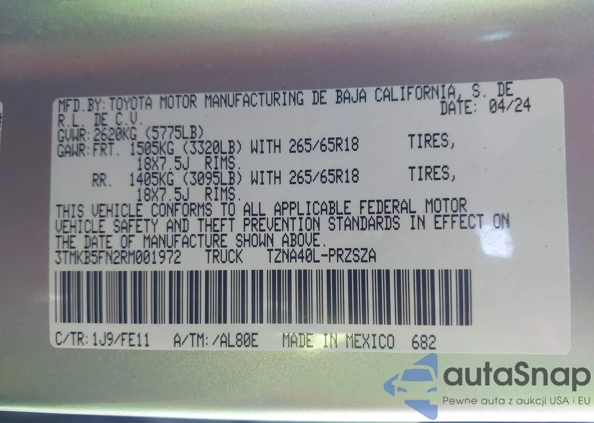 • VIN 3TMKB5FN2RM001972