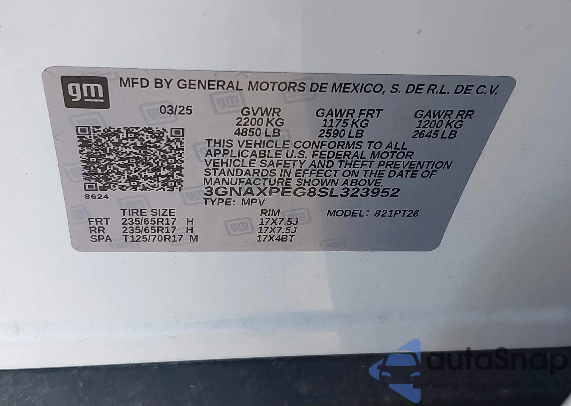 LOT: 43488517 VIN: 3GNAXPEG8SL323952