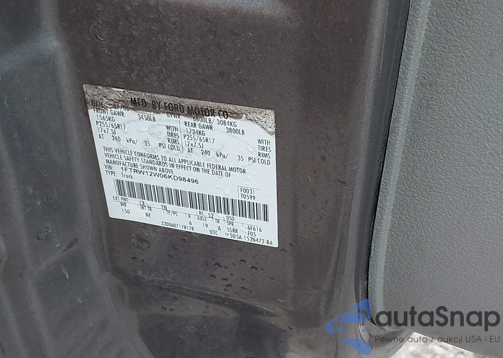 • VIN 1FTRW12W06KD98496