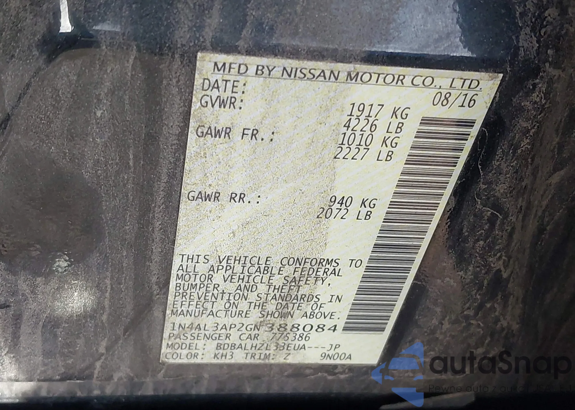 LOT: 43537788 VIN: 1N4AL3AP2GN388084