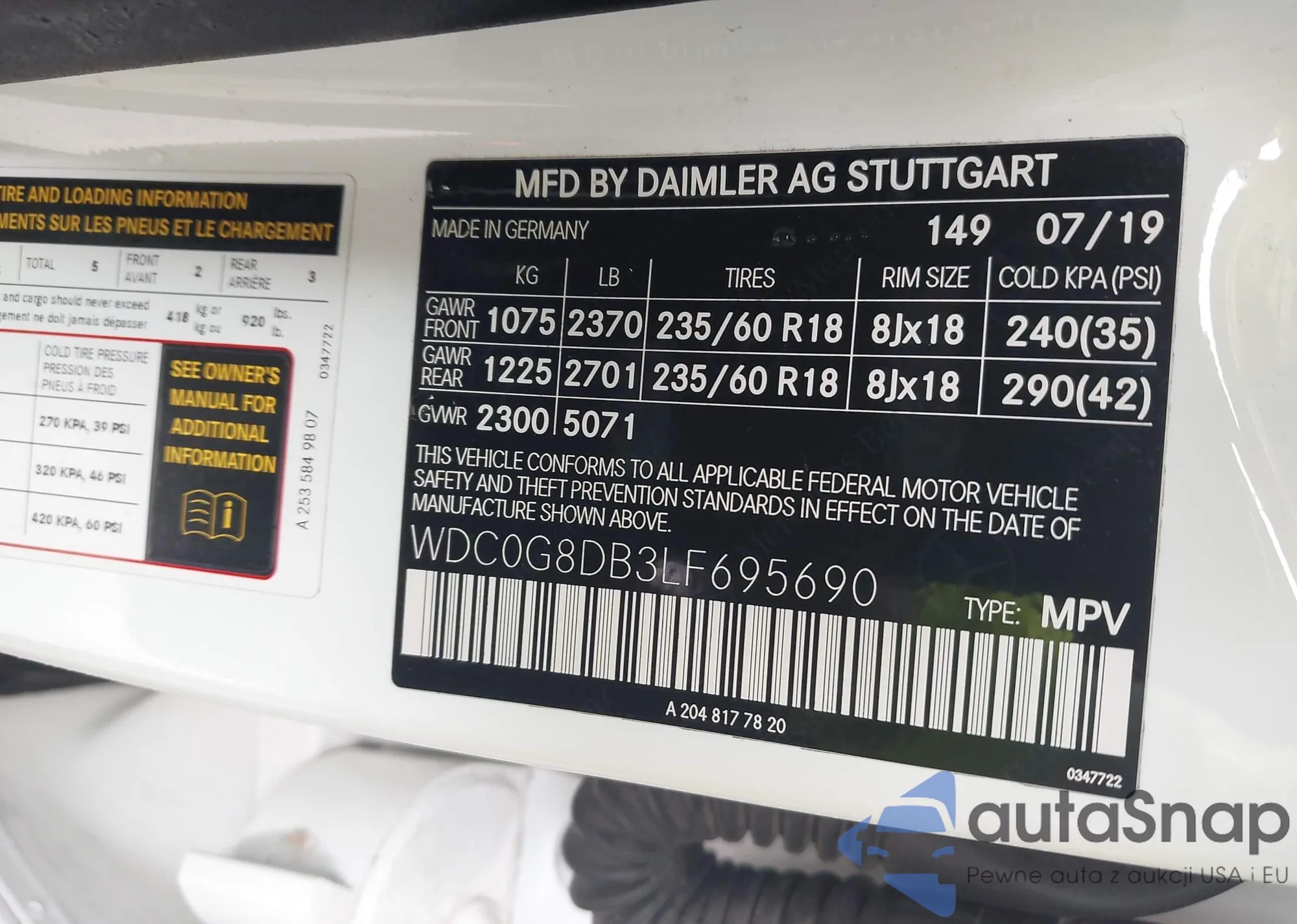 • VIN WDC0G8DB3LF695690
