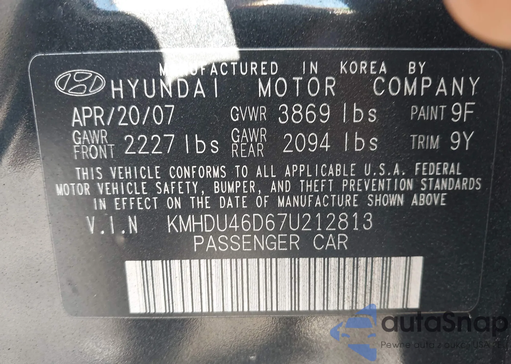 • VIN KMHDU46D67U212813