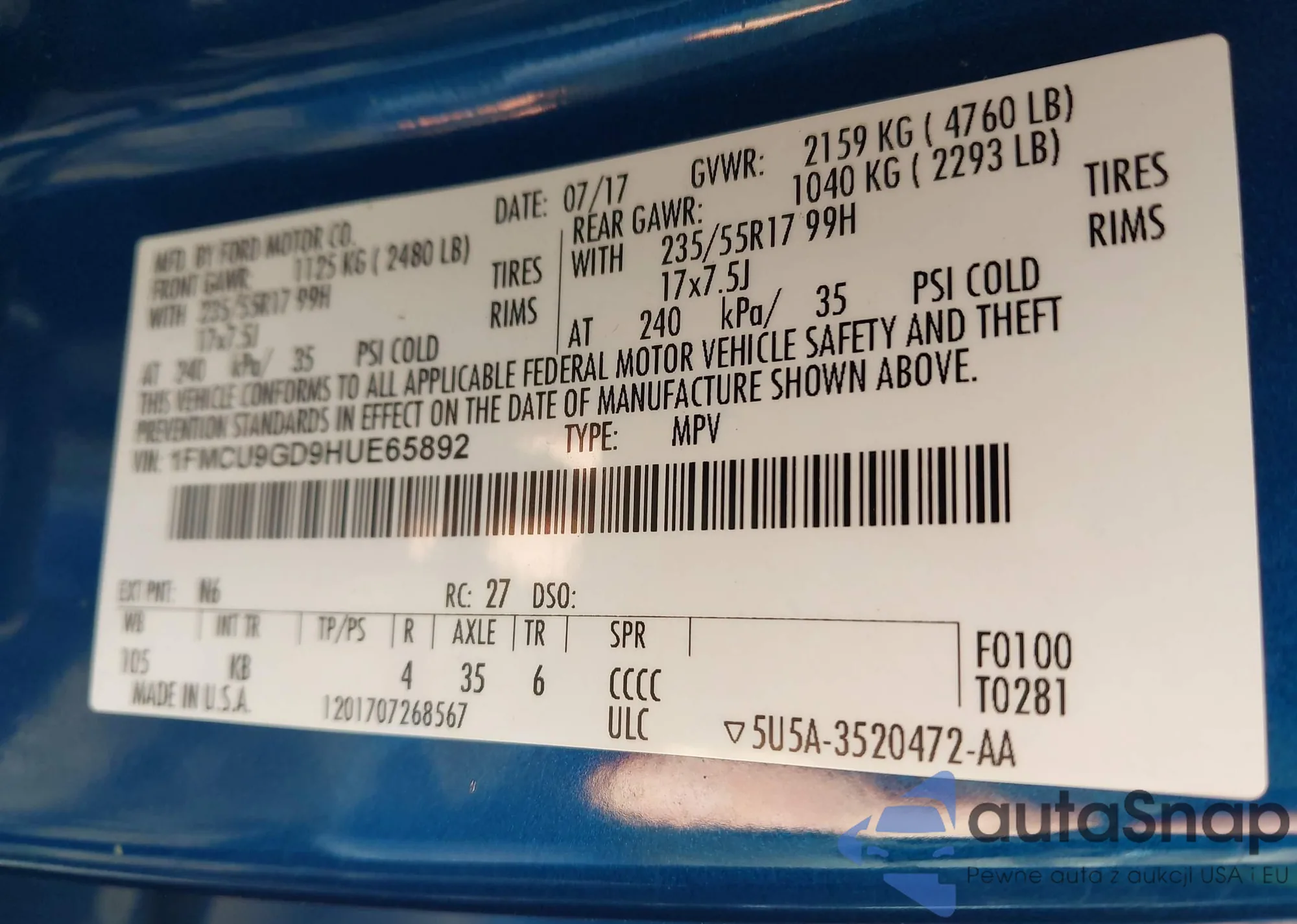 • VIN 1FM5K8GT6EGA36459
