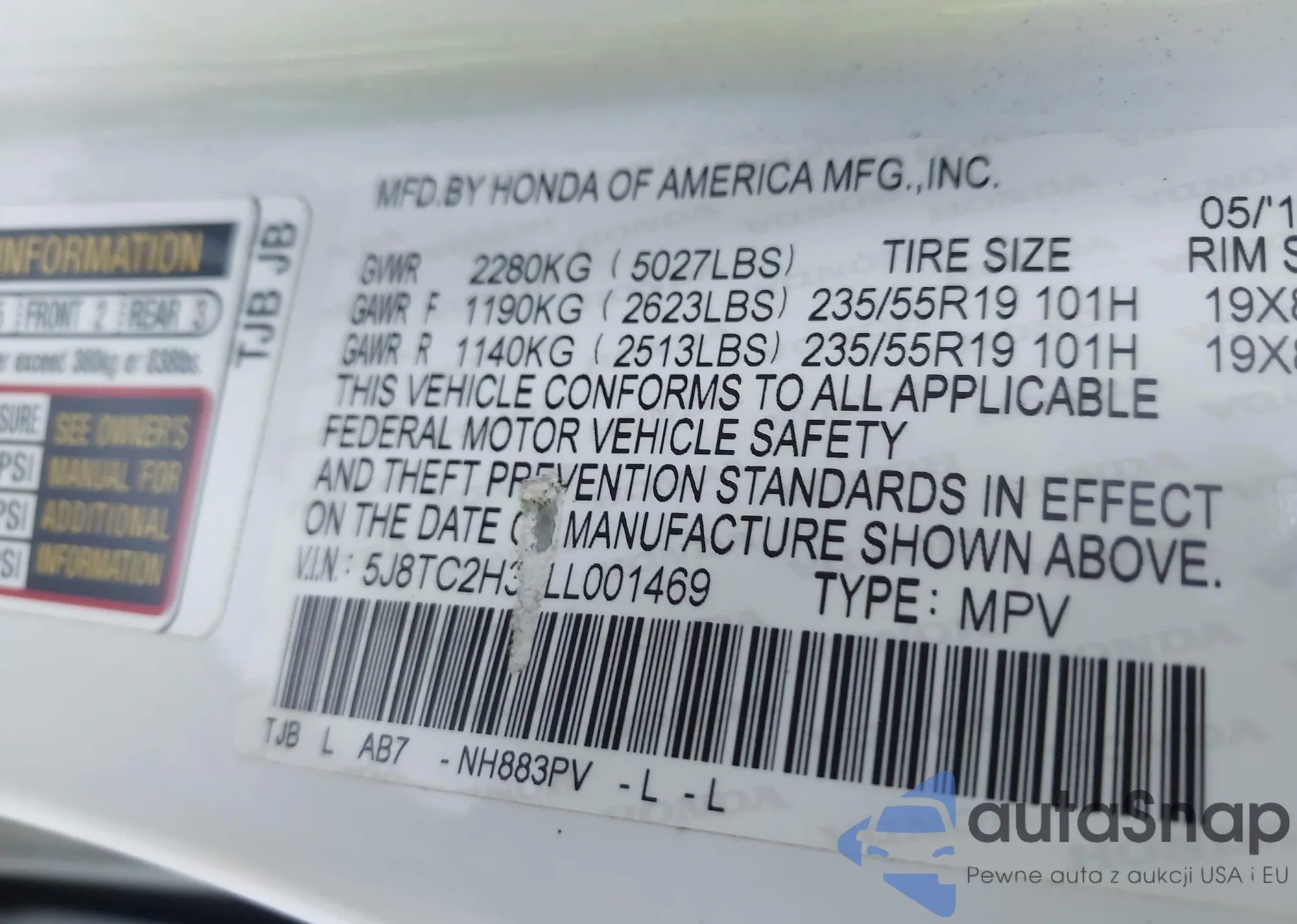 • VIN 5J8TC2H37LL001469