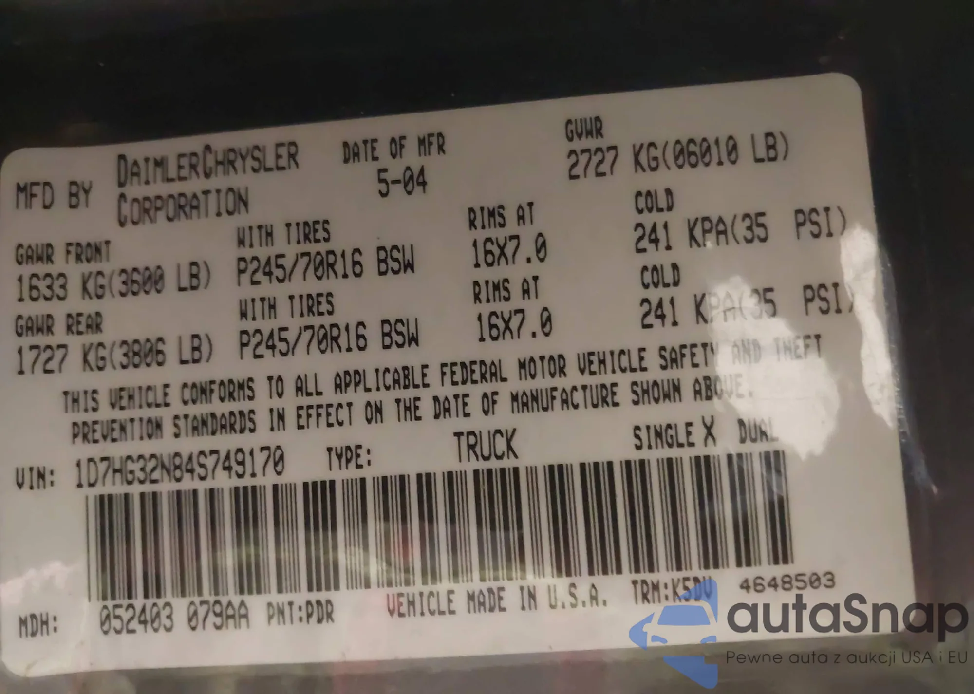 • VIN 1D7HG32N84S749170