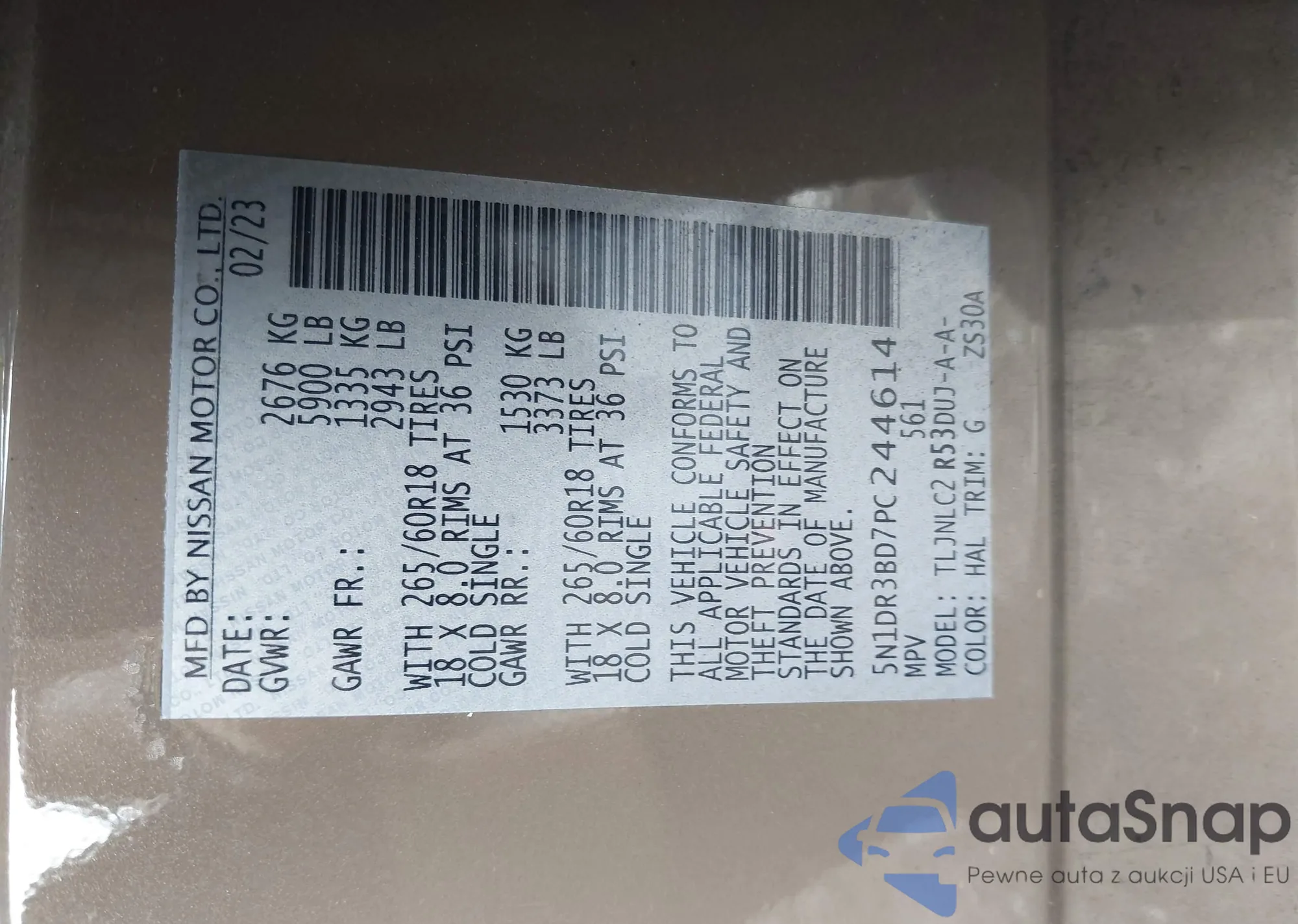 LOT: 43303685 VIN: 5N1DR3CA5NC249327