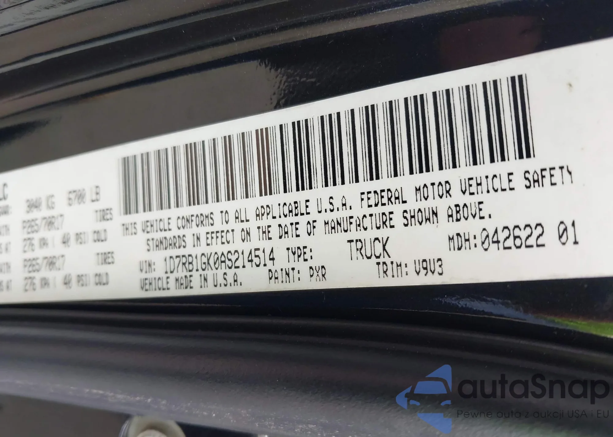 • VIN 1D7RB1GK0AS214514