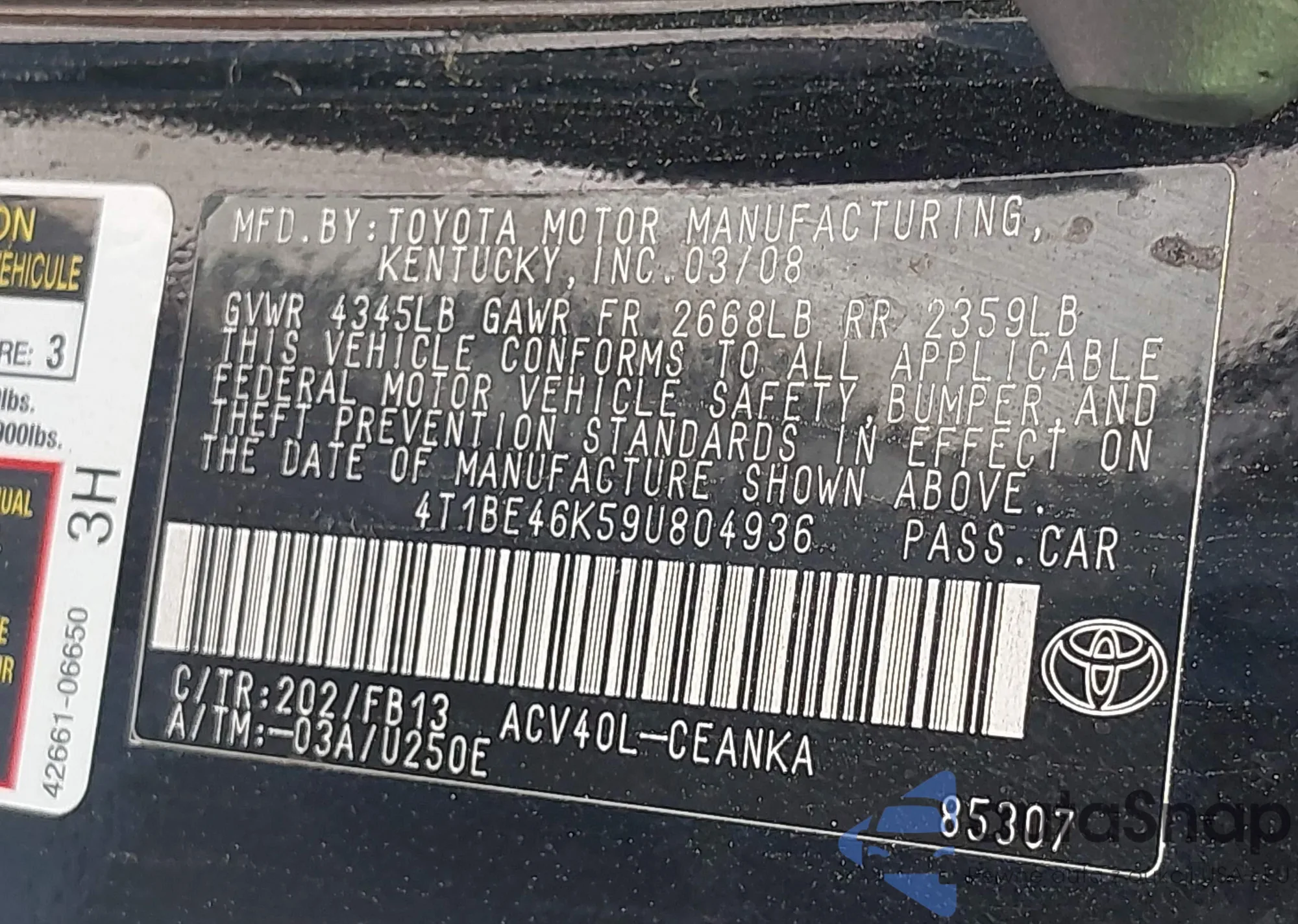 • VIN JN8AS5MT3DW019696