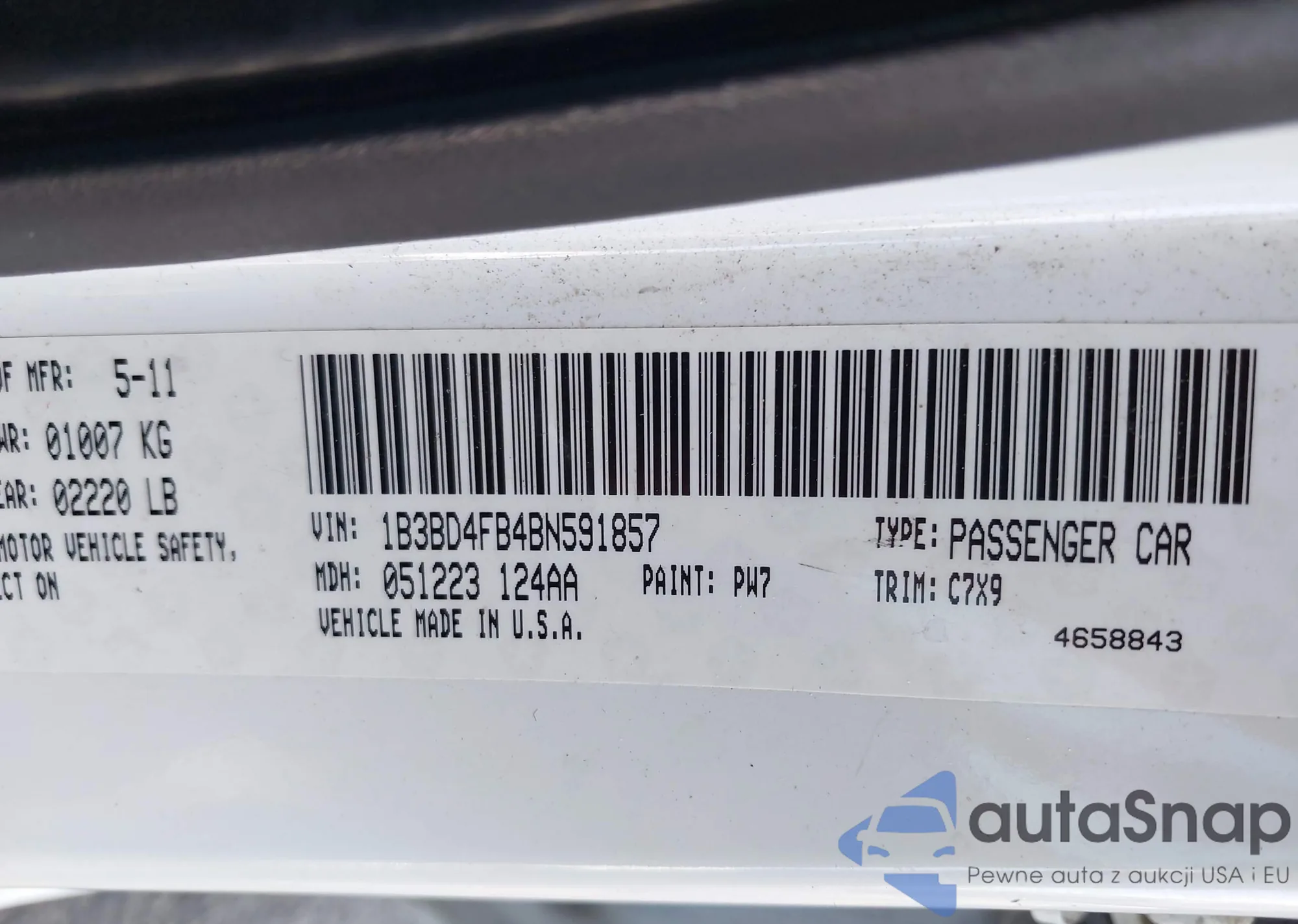 LOT: 43312280 VIN: 1B3BD4FB4BN591857